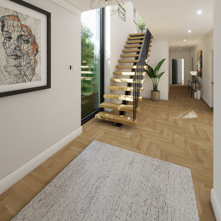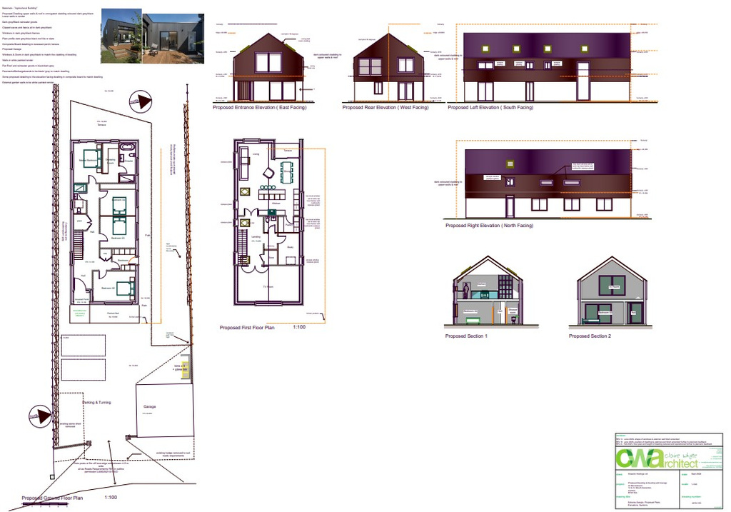 Externally, the property will benefit from landscaped gardens, a spacious parking and turning area, a double garage, and a built-in bin and recycling storage area.