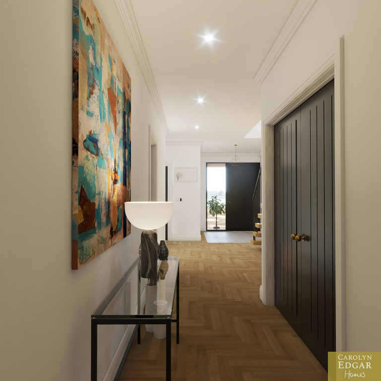 Internally, the accommodation is split over two levels with on ground level, spacious and bright entrance hallway with recessed covered porch, four generous double bedrooms, including a superb principal suite with ensuite shower room and separate dressing room. A modern family bathroom serves the remaining bedrooms, and practical boot room and cloakroom provide excellent additional storage and convenience.
