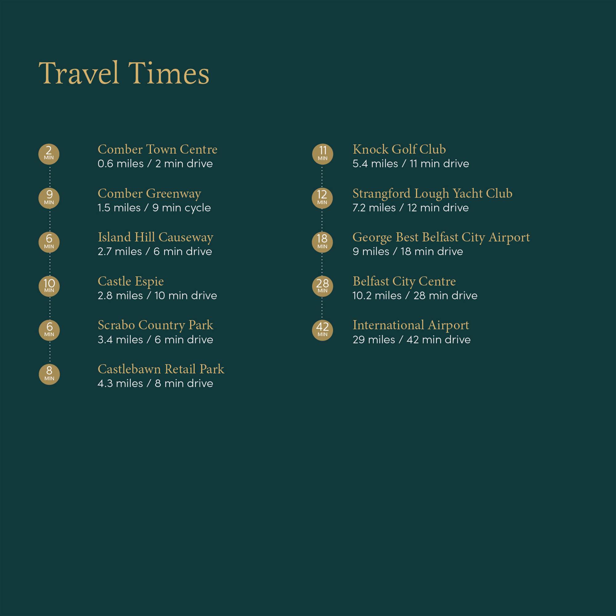 The location has great private and public transport links; being close to the dual carriage way connecting to Belfast City. This route offers the convenience of commuting by car or public transport. Translink buses provide great access to local amenities on a regular basis. The town of Comber lies just a few minutes away, with Belfast less than 30 minutes.