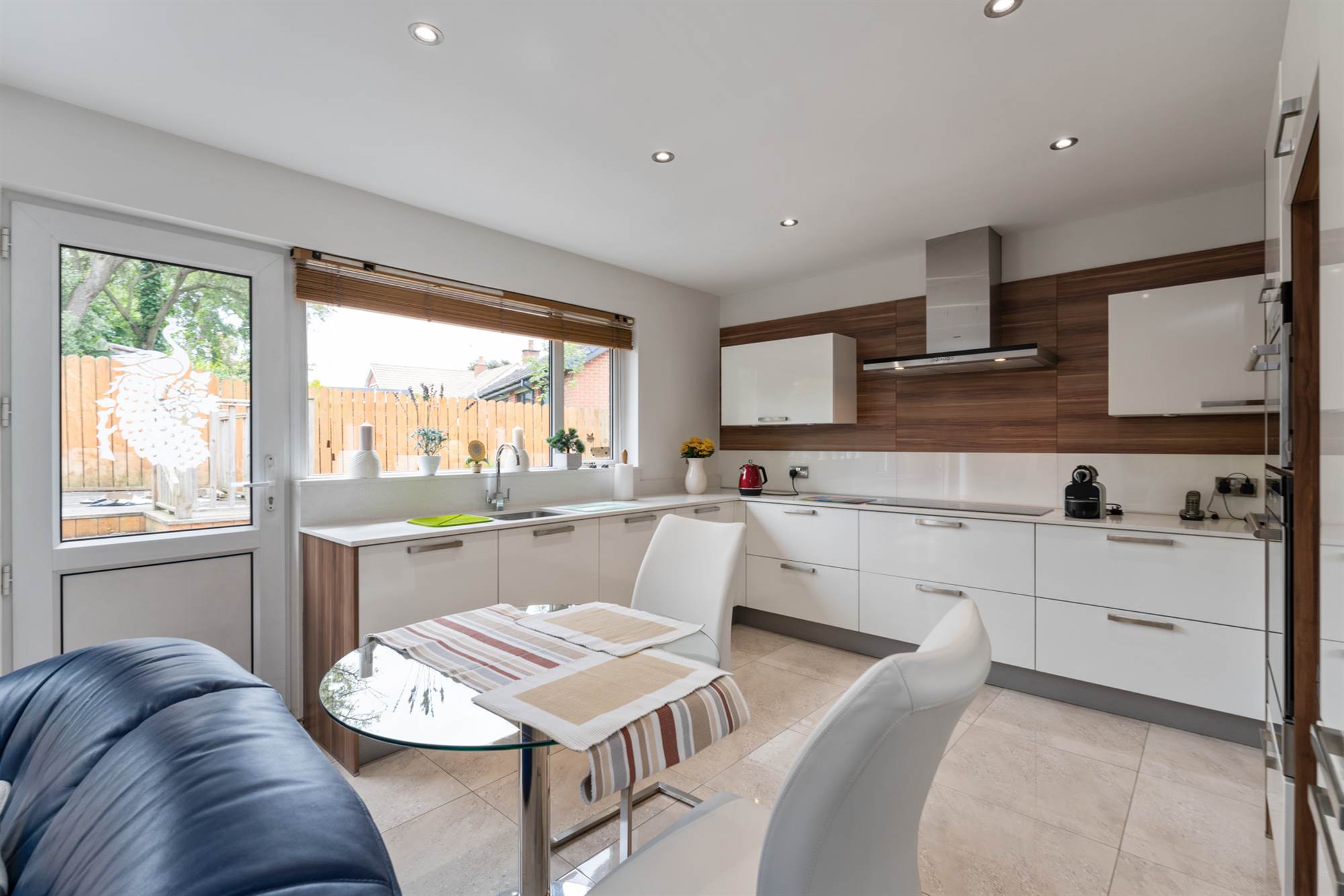 Externally the property rests on a corner plot with manicured lawns, mature trees to the front and side. The rear is laid out in feature raised timber decking area, artificial grass, patio areas and hedging. There is also an attached garage which is approached via a spacious tarmac driveway and offers excellent off road parking for family and guests.
