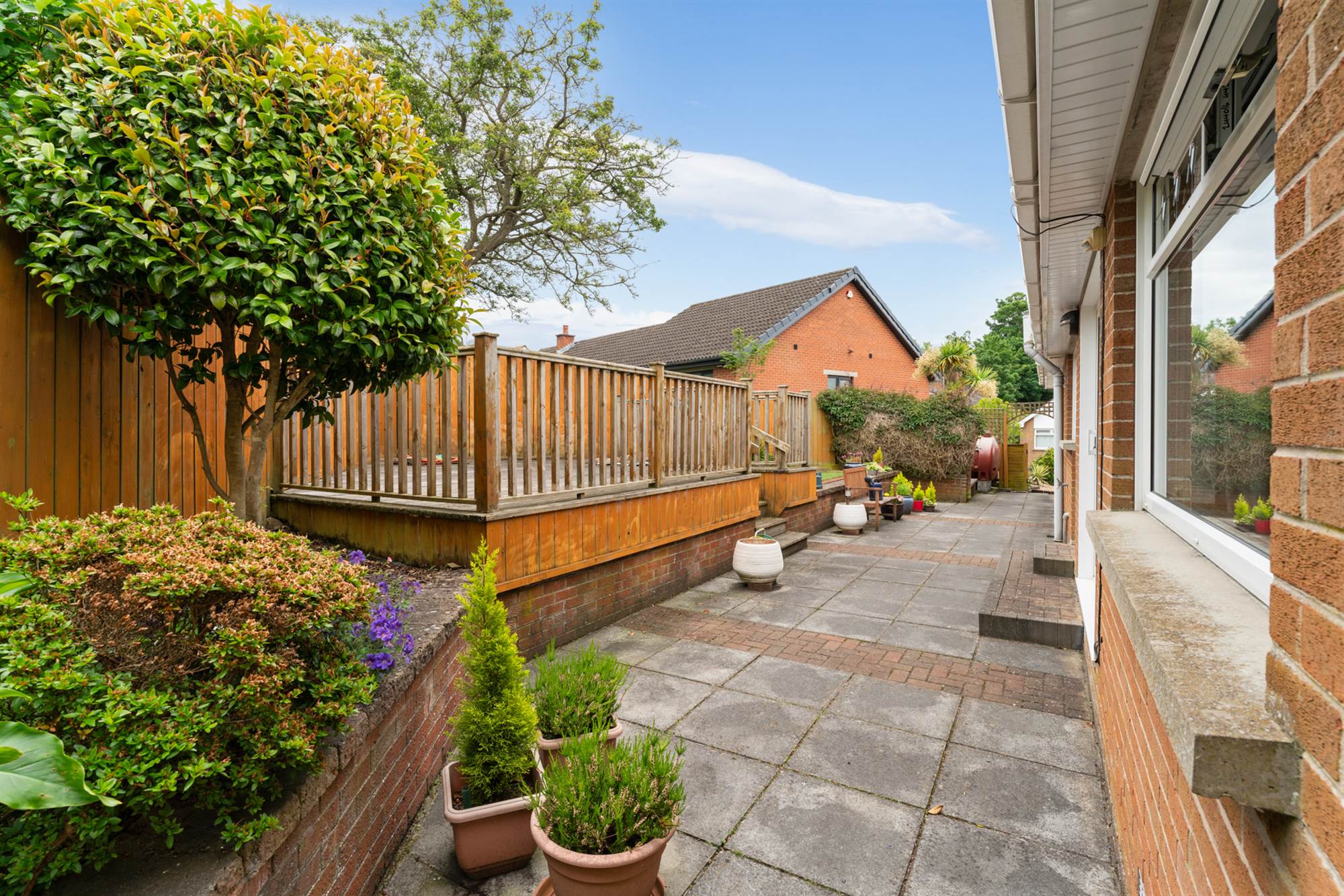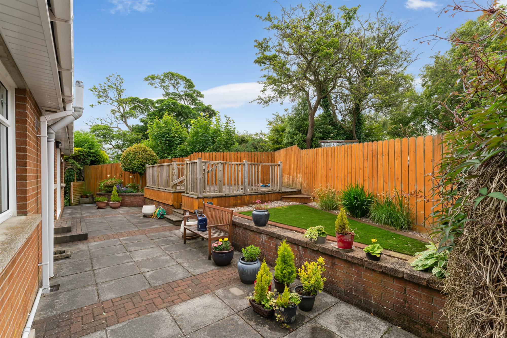 Gardens to front and side laid out in manicured lawns, mature trees, to rear in feature raised timber deck area, artificial grass, well stocked flowerbeds, extensive patio areas, artificial grass area, hedging, fencing, outside lights, outside water tap, oil storage tank, access to both sides for oil, bins etc.