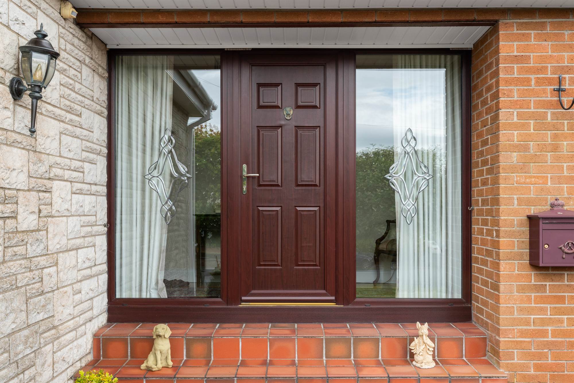 Quarry tiled steps to uPVC double glazed front door with matching side lights to Entrance Hall.