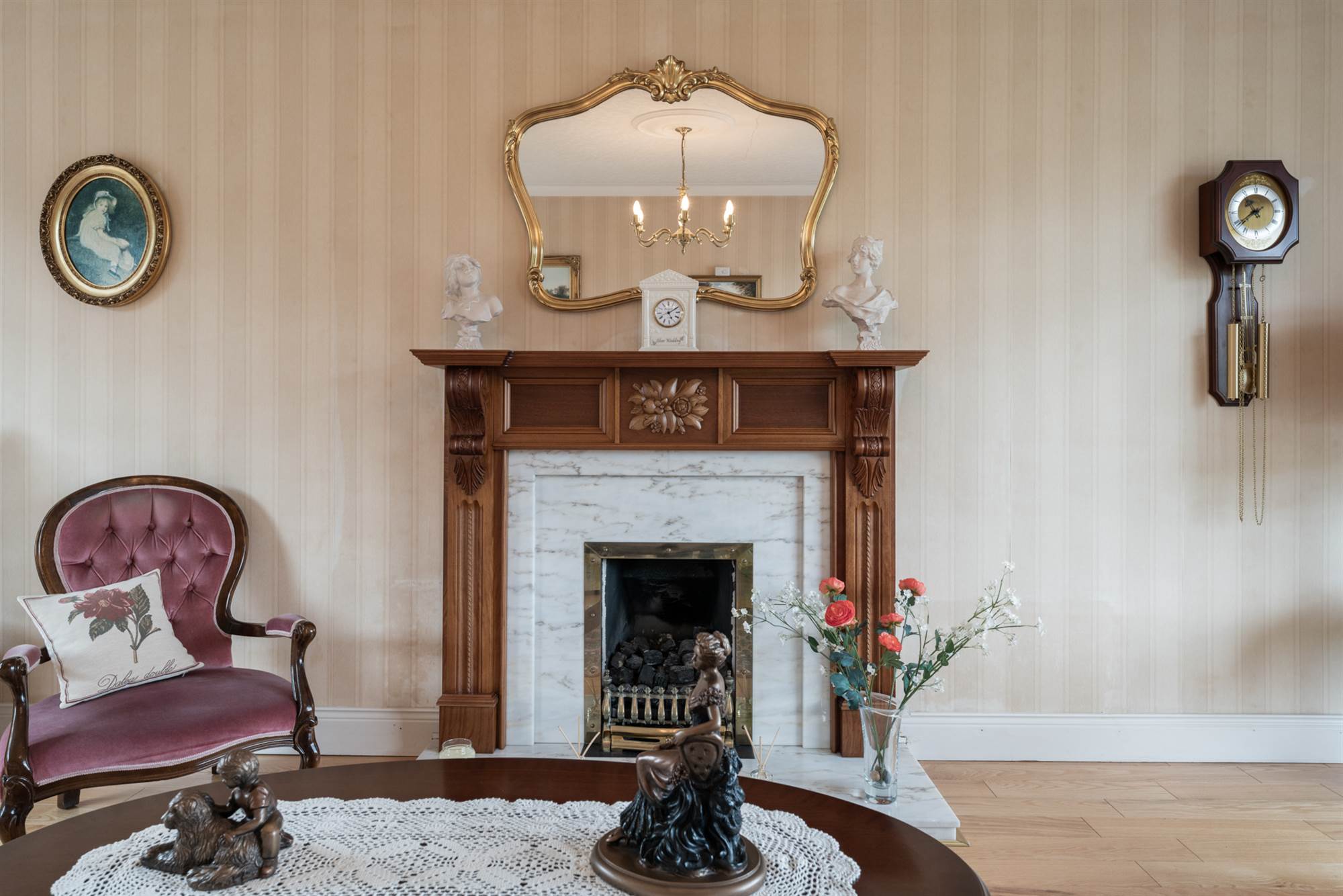 Lounge with feature Oak fireplace surround, gas fire and Oak floor