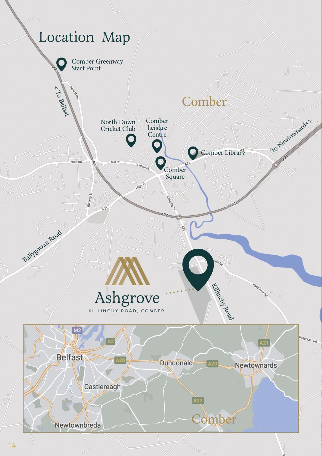 `Ashgrove´ is set in the beautiful surroundings of Strangford Lough; this spectacular new development is situated off the Killinchy Road on the south side of Comber. The area boasts a selection of schools, restaurants, cafes, independent retailers and leisure attractions. You will be spoilt for choice with local attractions such as the National Trust home at Mount Stewart, estate houses and country parks at Scrabo, Delamont Country Park and the Wetlands Centre at Castle Espie. When its time to relax and grab a bite to eat there is a great selection of local restaurants well known for their enviable reputations which extend across Northern Ireland and beyond.