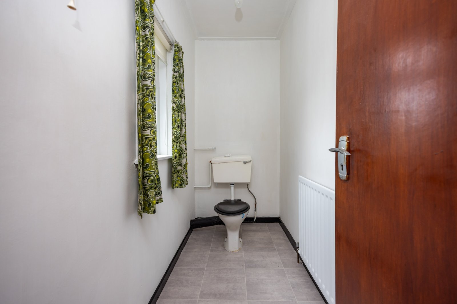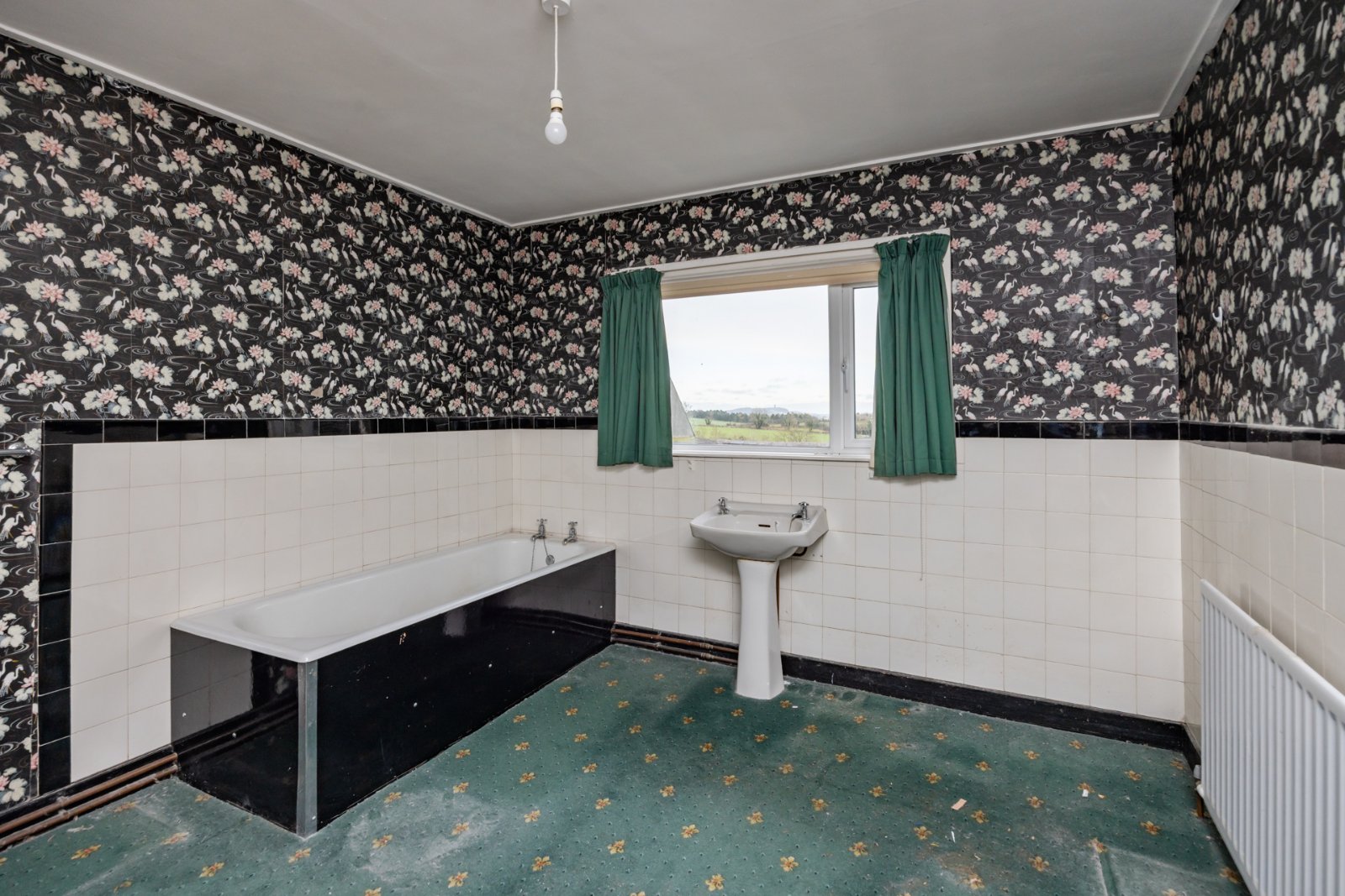 Panelled bath, pedestal wash hand basin, shelved hotpress, views to Scrabo Tower.