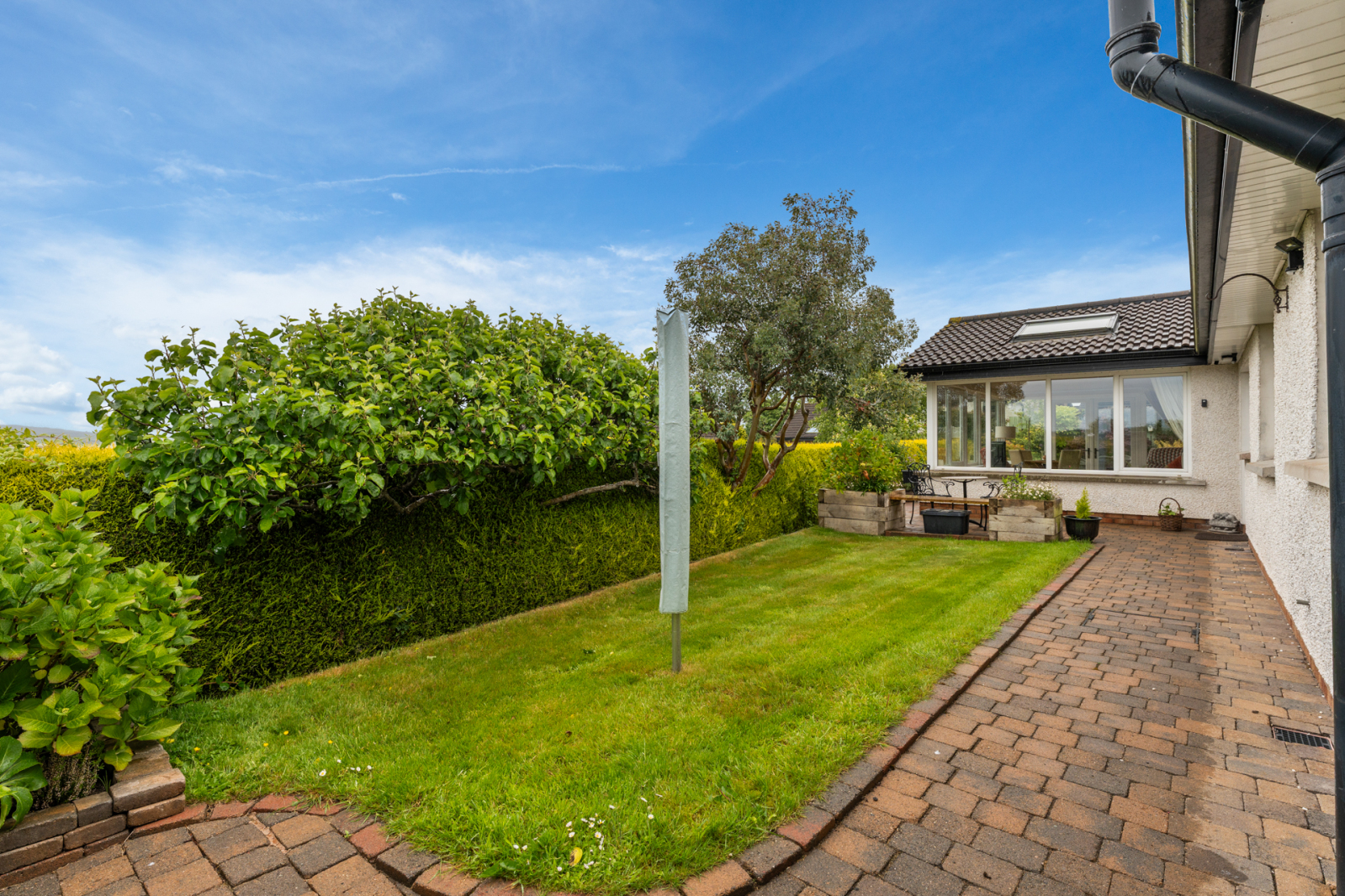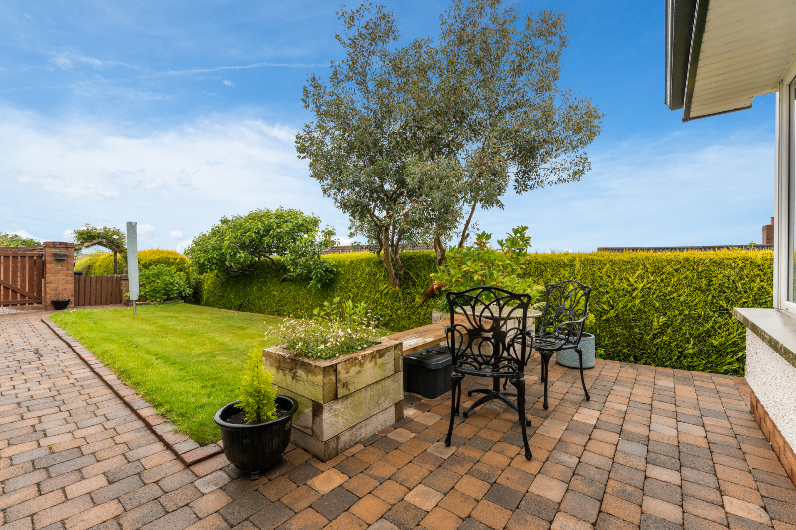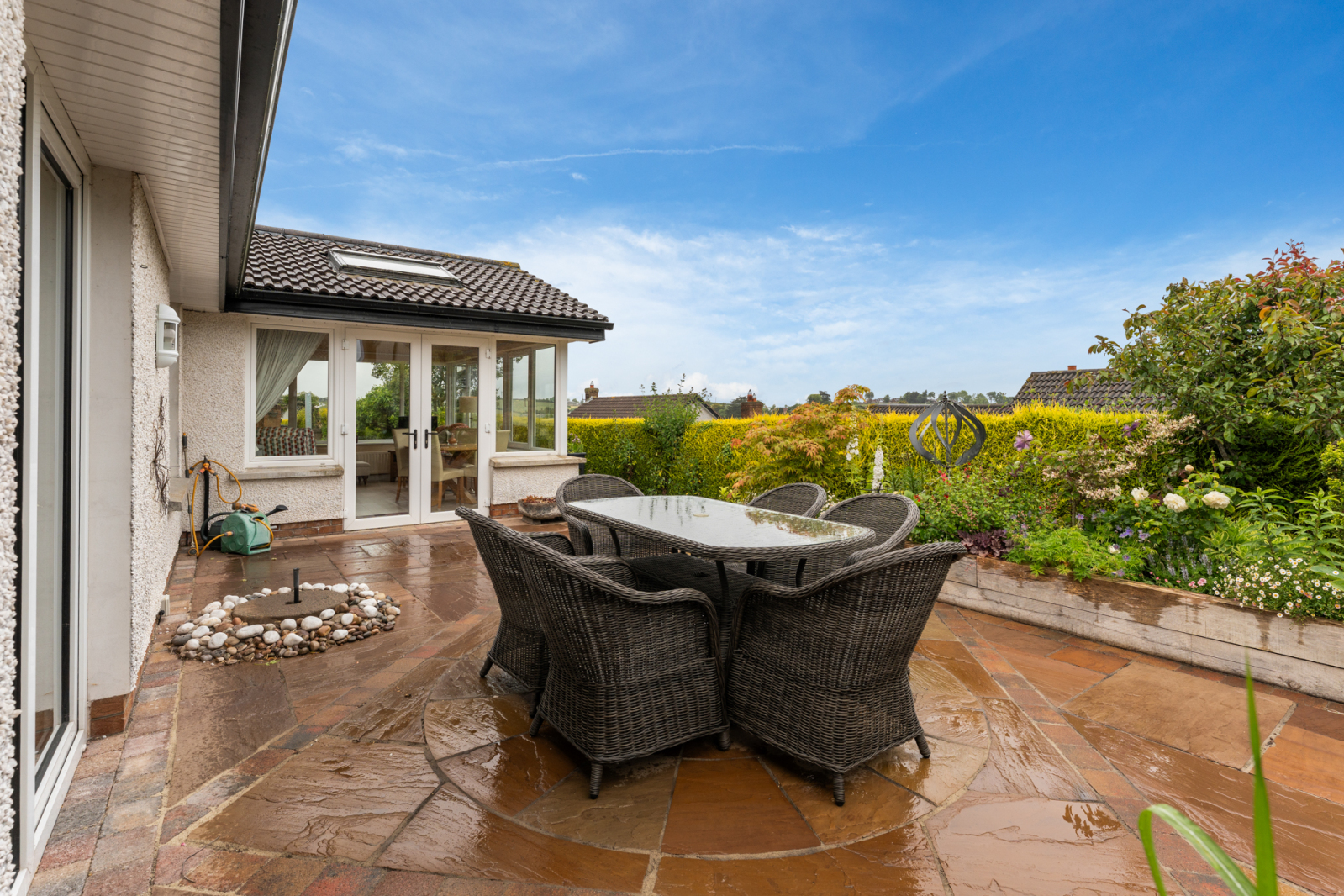 Gardens to front, side and rear in immaculately presented lawns, extensive 'Tobermore' sandstone patio, 'Tobermore' brick paved paths, feature raised flowerbeds with sleeper walls, hedging, trees and shrubs, far reaching views to Craigantlet.
