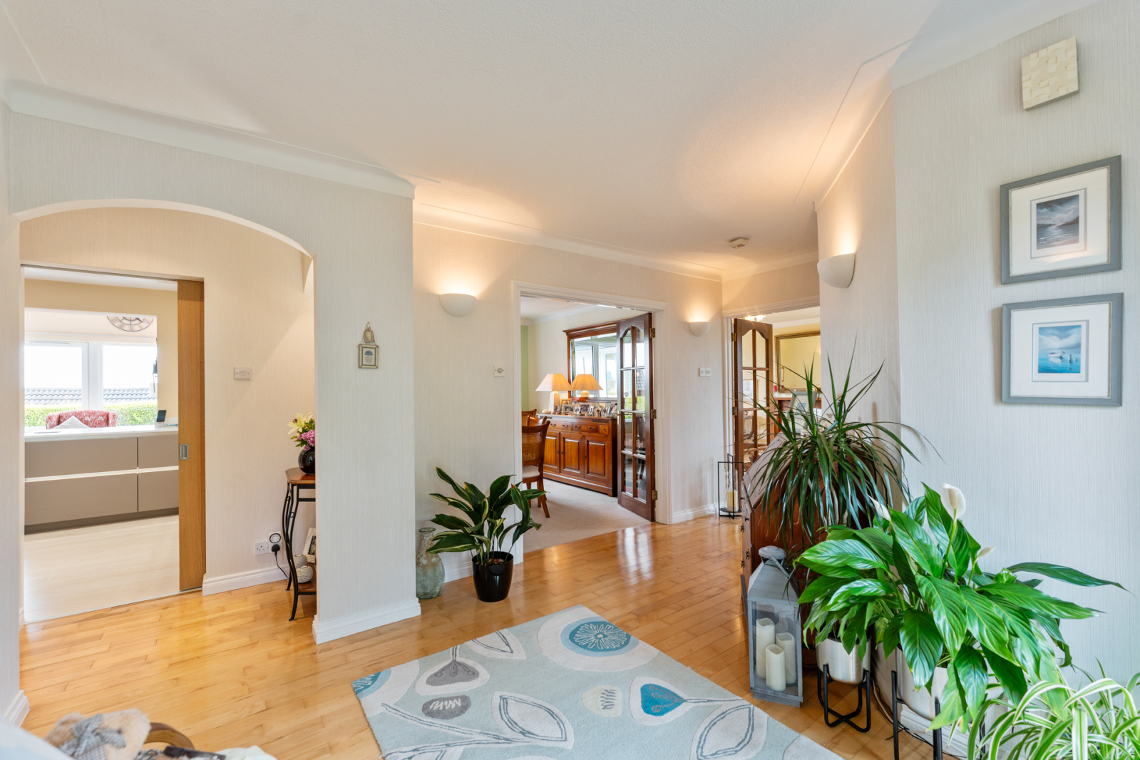 This beautifully presented bungalow is very deceptive in it proportions, as it holds a wealth of accommodation comprising of: welcoming entrance hall, lounge with attractive Oak fireplace and gas fire, formal dining room, snug with stove, luxury "Mode" kitchen with Truffle Grey and Cashmere high gloss units, range of 'Neff´ integrated appliances and "Quooker" tap, open to large sun room with far reaching views.