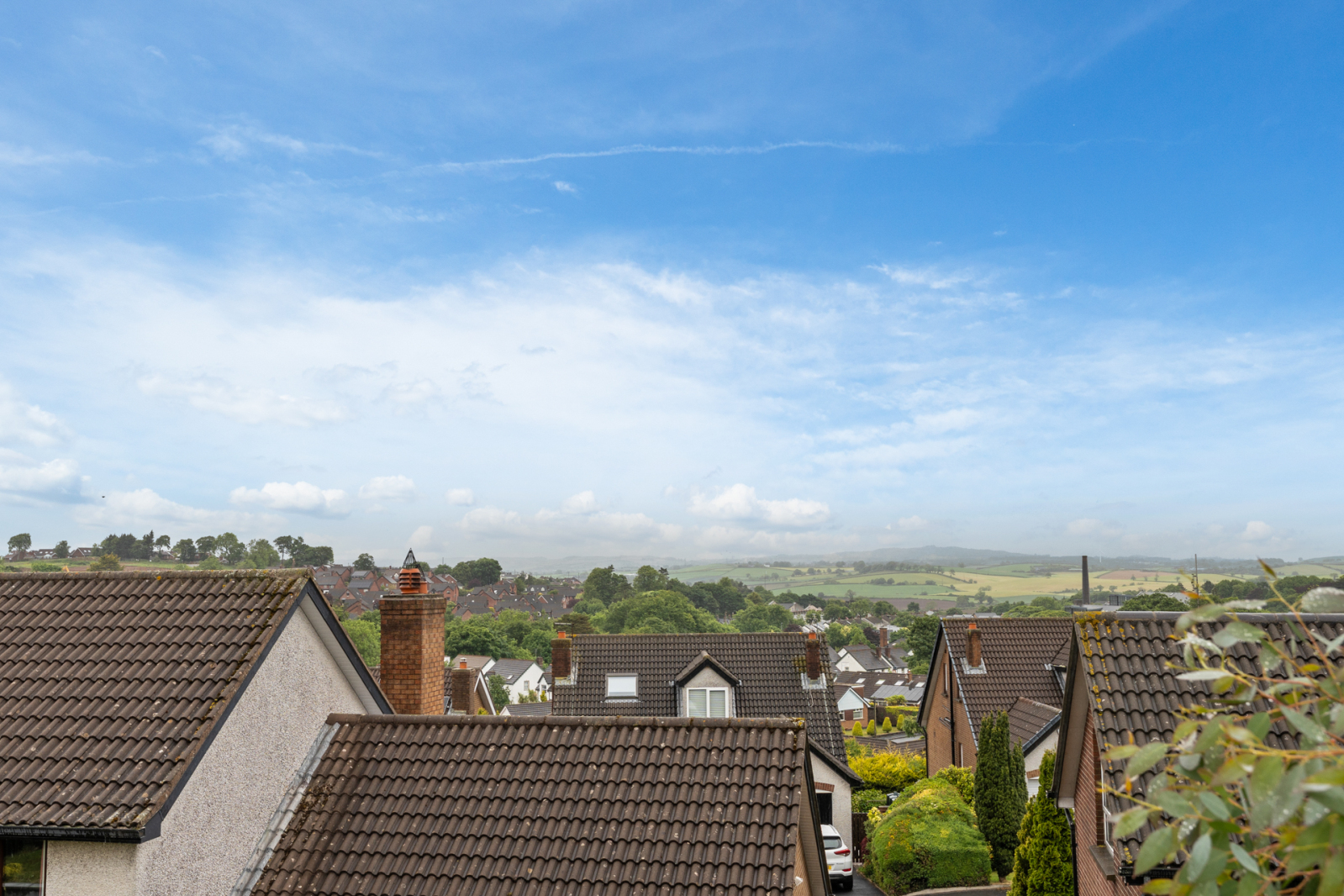 Wood effect polished laminate floor, triple aspect with far reaching views to Craigantlet and Divis, uPVC double glazed French doors to rear enclosed garden, two keylight roof windows.