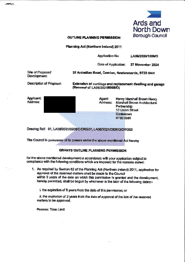 The subject holds Outline Planning Permission Granted for the "Extension of Curtilage, and Replacement Dwelling Plus Attached Garage". Now that OPP has been established, the extremely lucky purchasers have the opportunity to proceed to design and build a wonderful new country style home under planning application: LA06/2021/0908/0, granted on 7th January 2025.