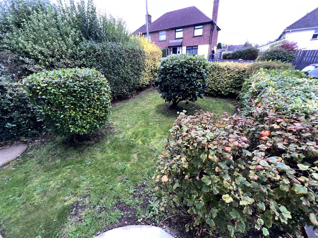 Mature gardens in lawns to the front and rear enclosed with hedging