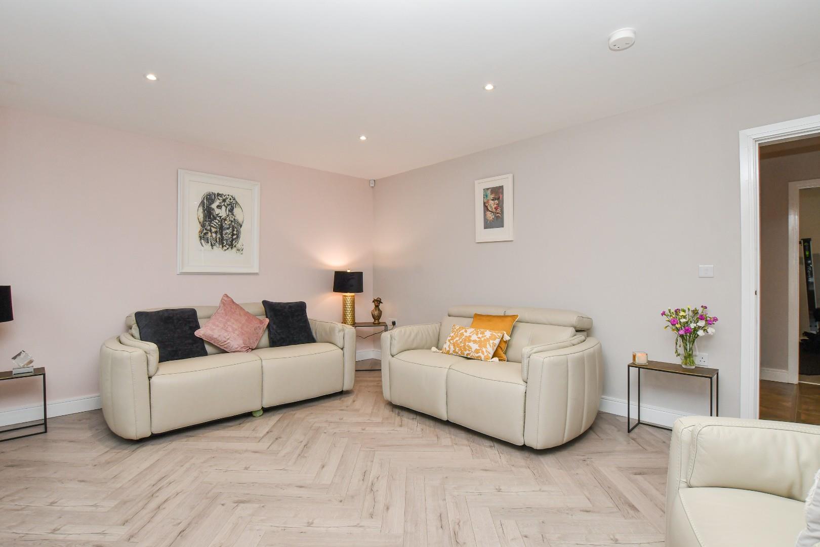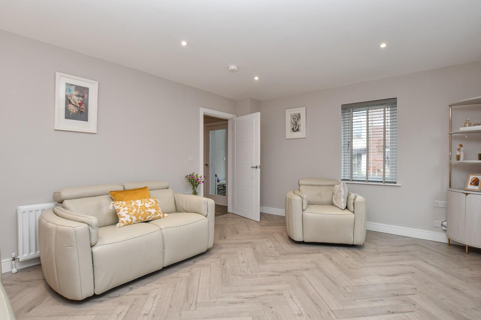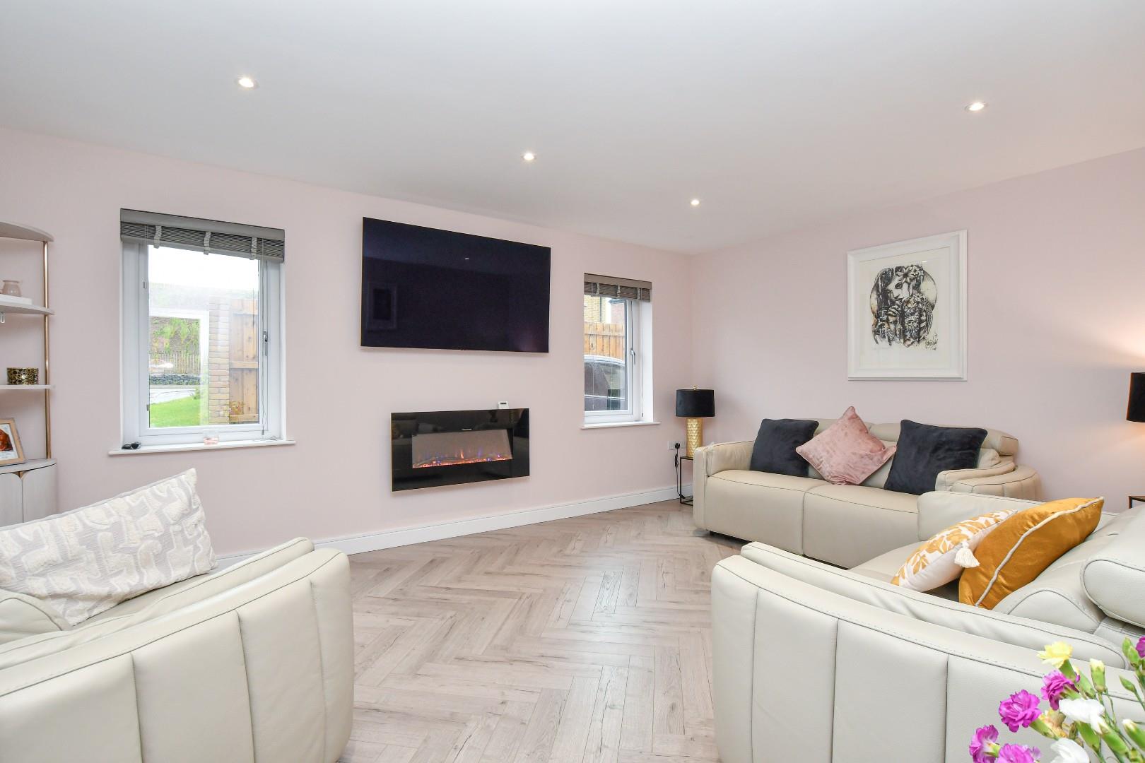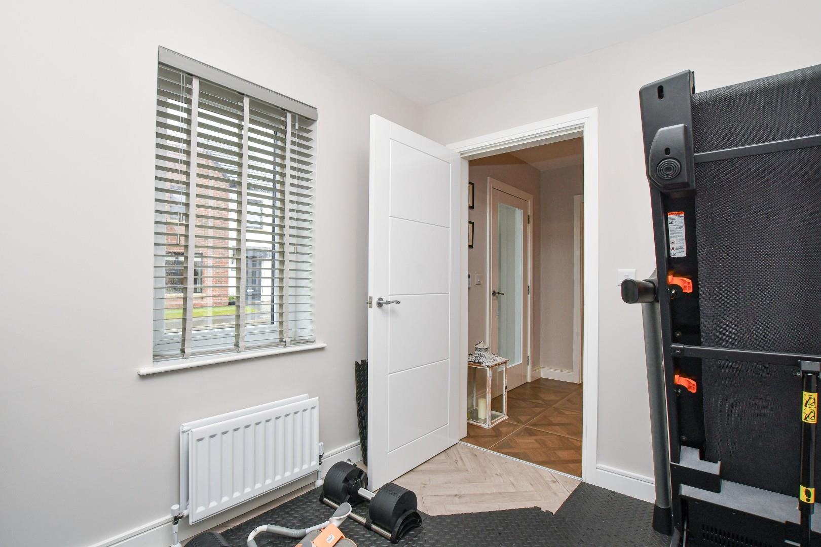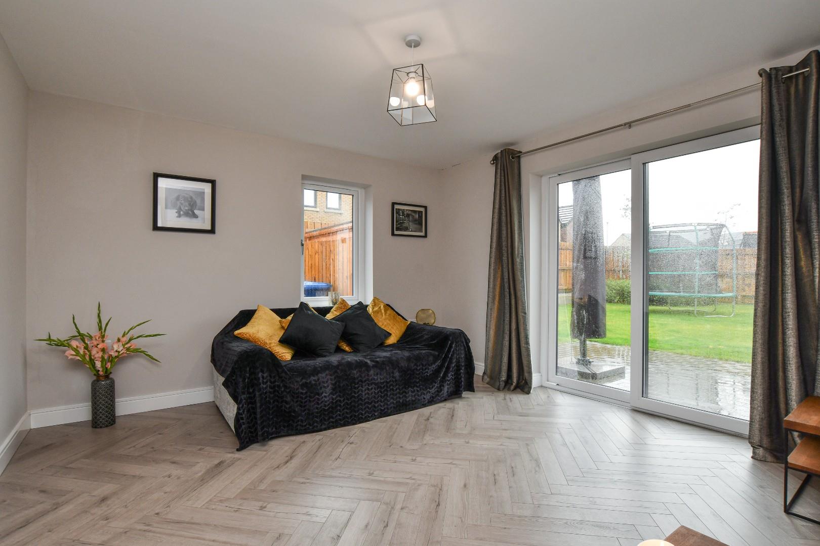 A separate family room offers further living space and opens via sliding patio doors to the rear garden, creating a seamless indoor-outdoor flow. At the heart of the home lies a generous open-plan kitchen and dining area, complete with a range of high-quality integrated appliances and access to a separate utility room, making it ideal for both family life and entertaining. An additional reception room is currently used as a home gym but offers flexibility as a playroom, office, or snug.