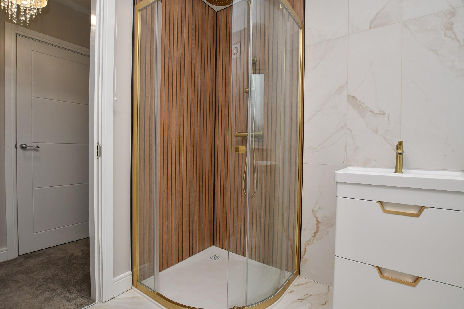 Upstairs, the property continues to impress with four well-proportioned bedrooms, two with a spacious walk-in dressing room and including a luxurious master suite boasting an ensuite shower room and . A modern and beautifully finished family bathroom features a panelled bath and separate shower cubicle, catering perfectly to the needs of a growing family.
