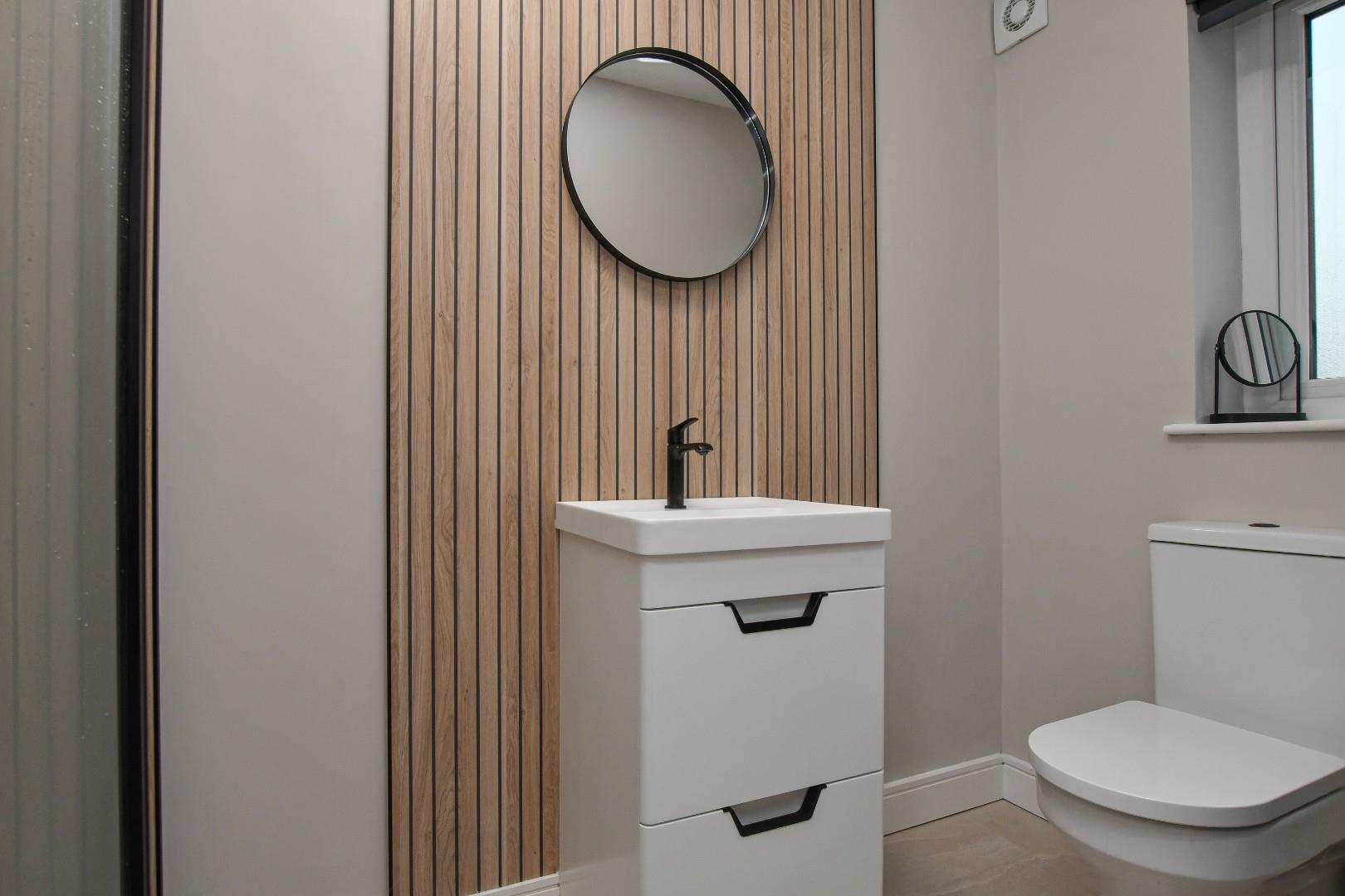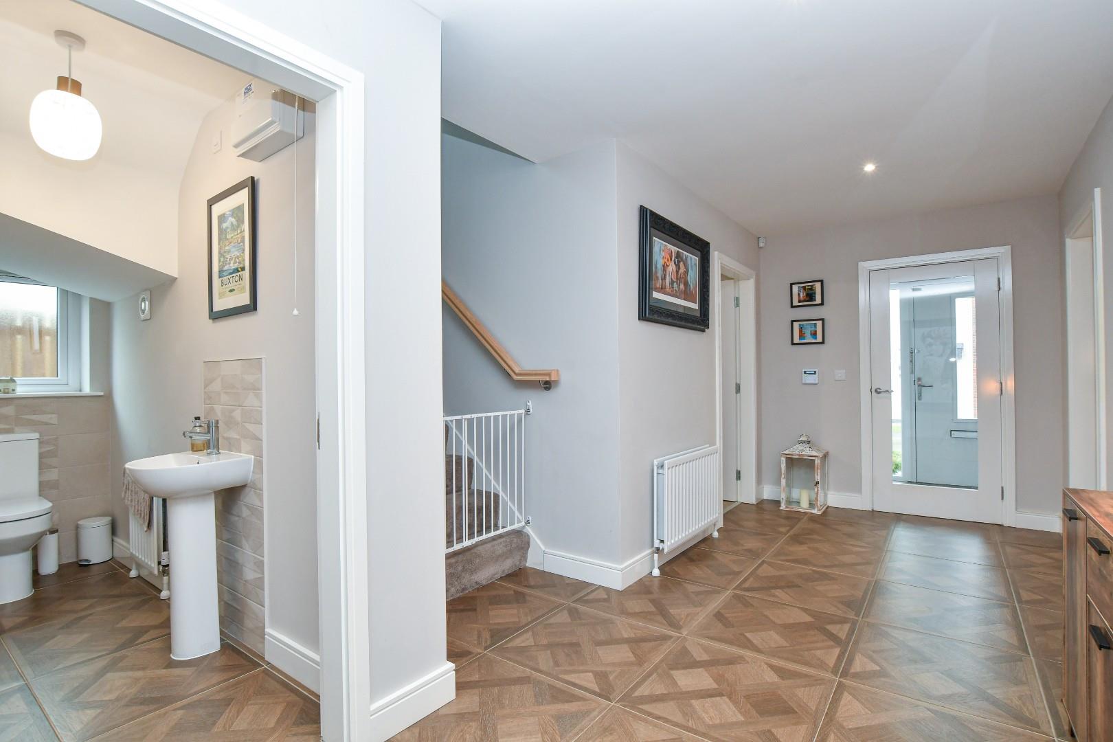 From the moment you step into the entrance porch and through to the welcoming hallway, this home impresses with its spaciousness and attention to detail. A convenient downstairs WC adds to the practicality of the ground floor, while the elegant lounge features a contemporary electric fire set against a striking feature wall, perfect for relaxing evenings.