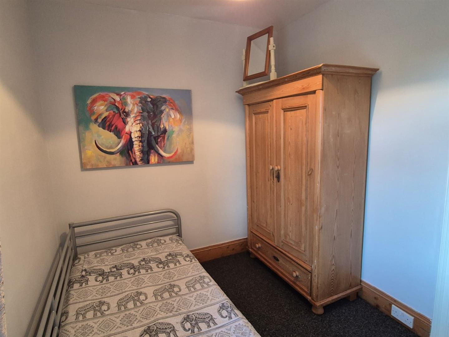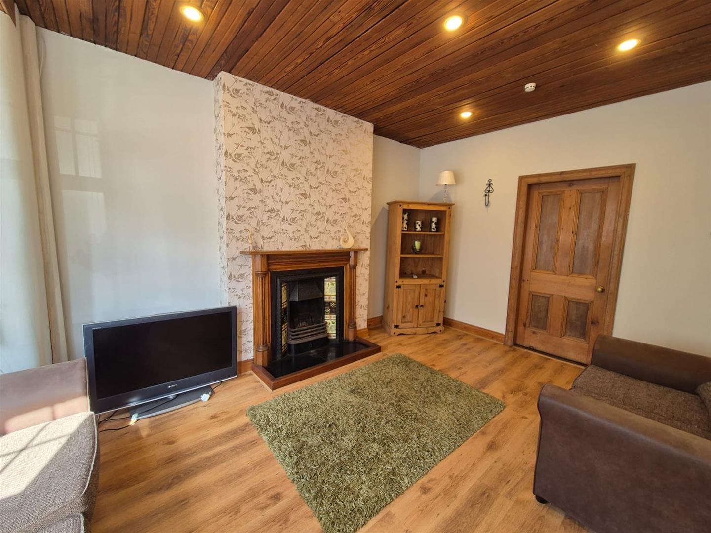 Beautiful cast iron style fireplace with open fire; oak fire surround; wood laminate floor; bay window; tongue and groove ceiling; under stair storage cupboard;