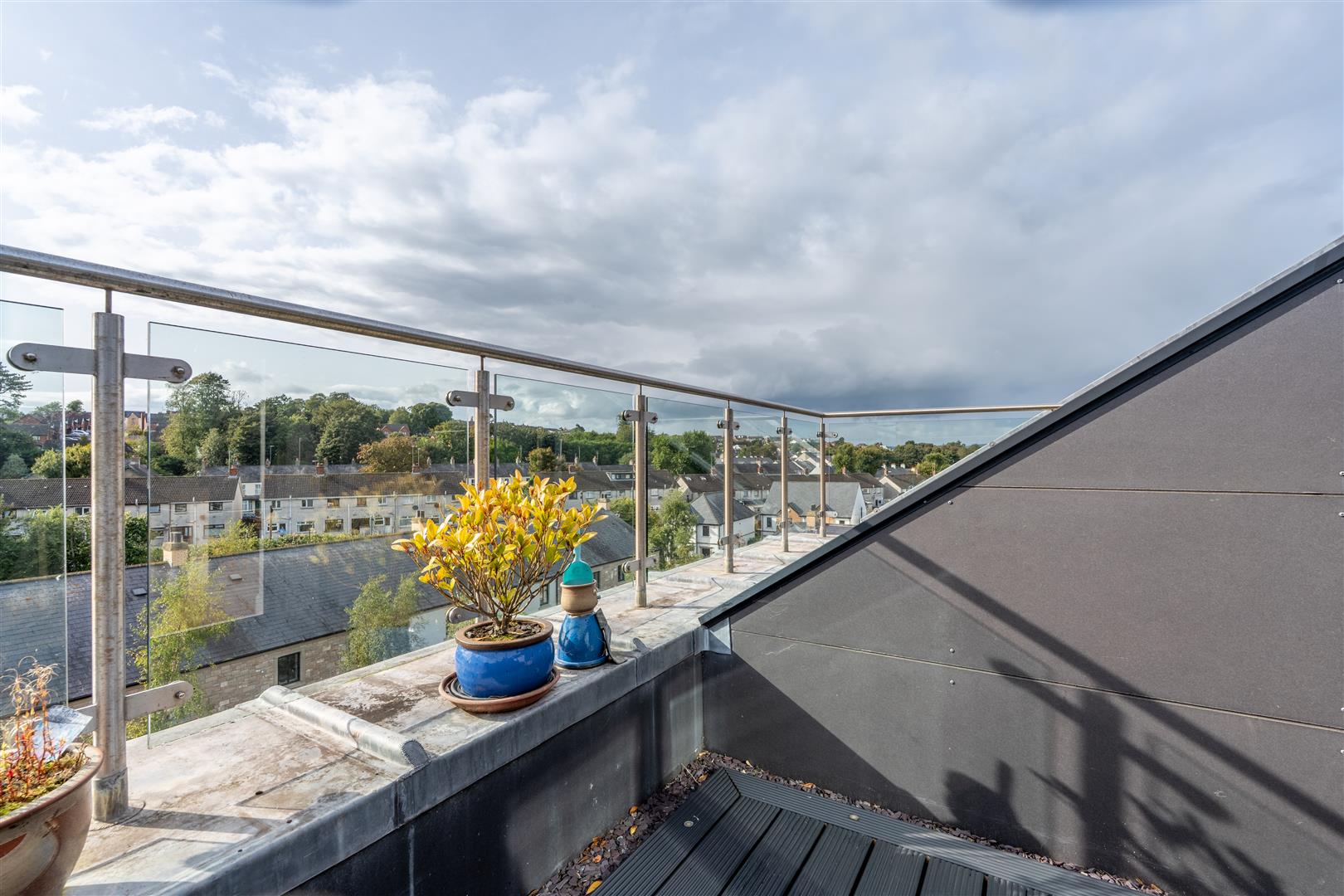Three decked roof terraces; designated parking; access to gym and leisure complex.