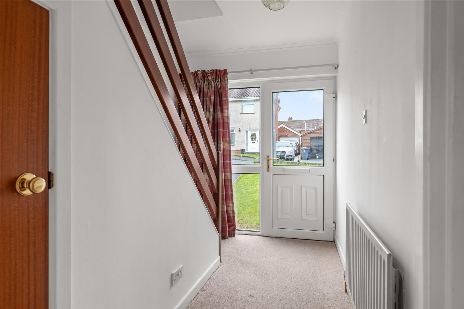 Glazed Upvc entrance door with matching side light; telephone connection point; under stairs storage cupboard; corniced ceiling.