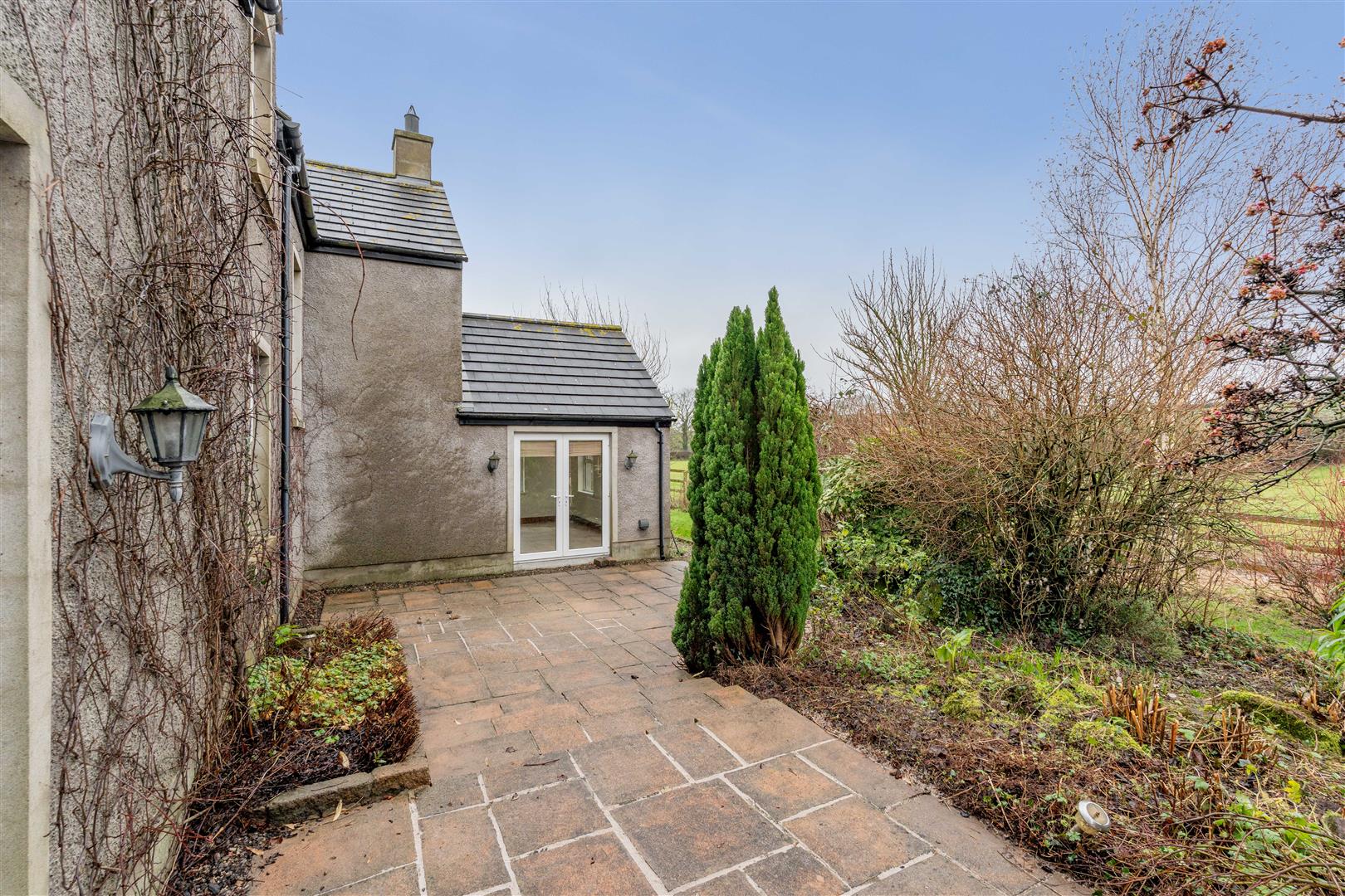 Outside, the gravelled driveway leads to the detached double garage. Gardens are laid out in lawn with a paved patio area and planted with a fantastic range of ornamental and flowering shrubs.