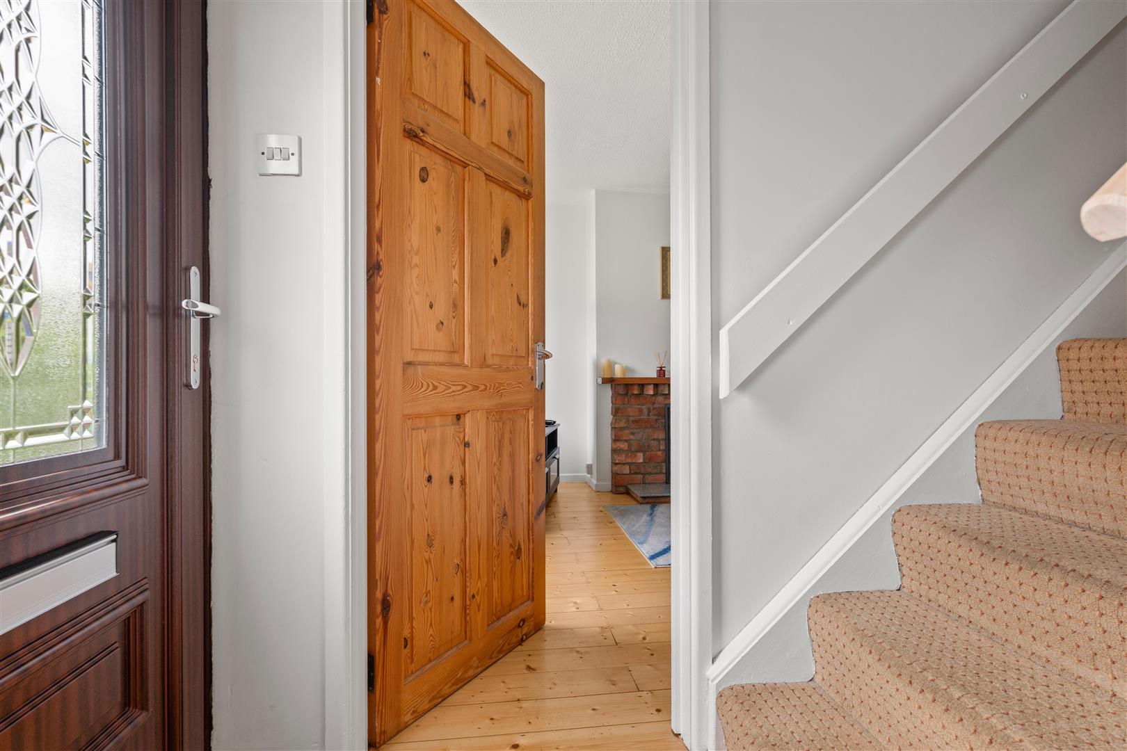 Glazed Pvc entrance door; wood strip floor.