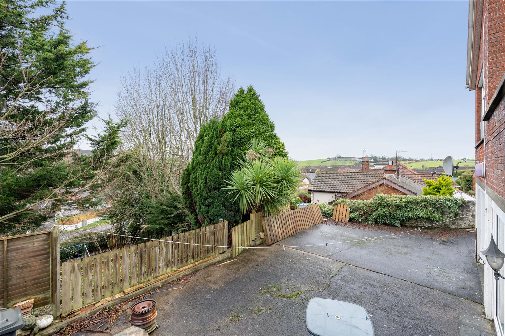 Concrete driveway leading to the side and rear of the property and to:-