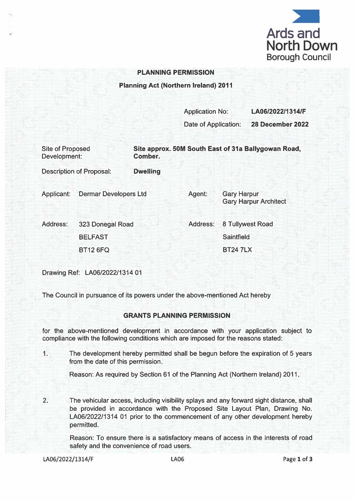 Site approx. 50M South East of 31a Ballygowan Road, just outside Comber town centre