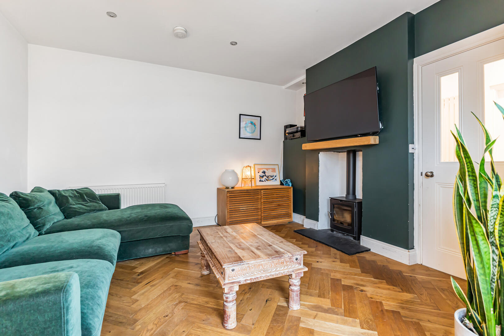 Living Room with Feature Fireplace, Solid Wood Parquet Flooring and Multi Burning Stove