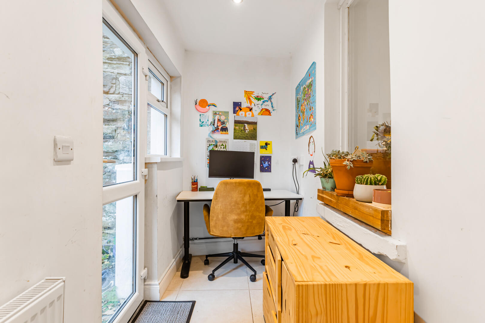 To the rear, a courtyard opens to an extensive fully enclosed garden laid in lawn with mature planting providing a private sanctuary. A large outhouse offers excellent potential for home office or garden room.