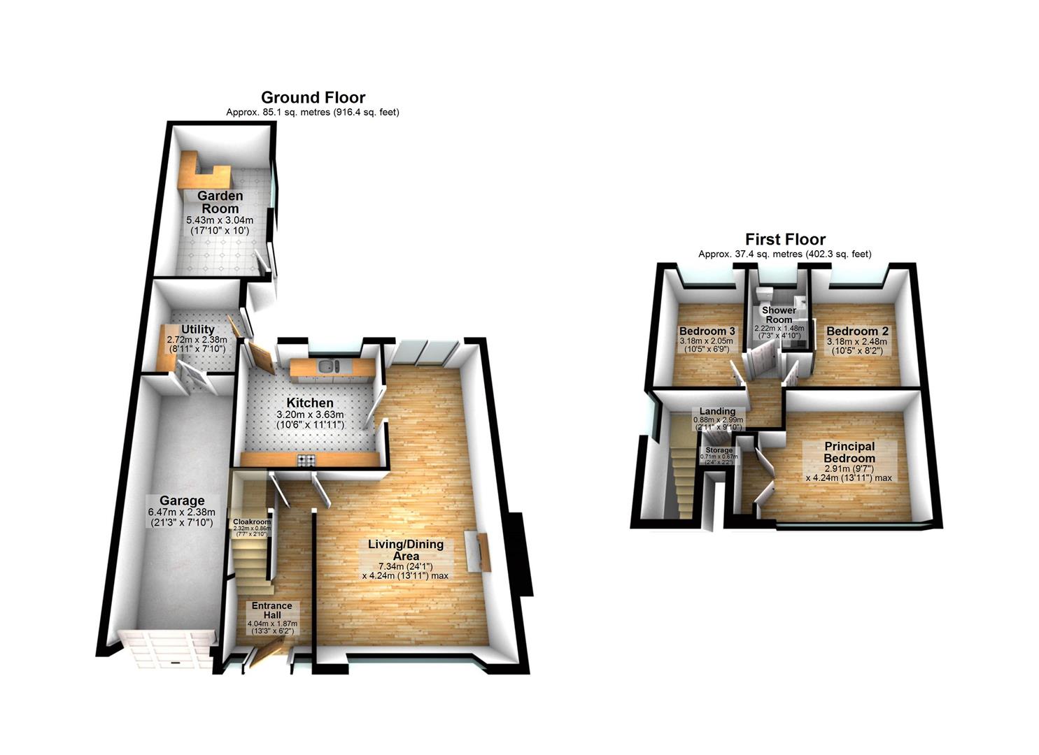 Shower Room 7'3" X 4'10" (2.22m X 1.48m)