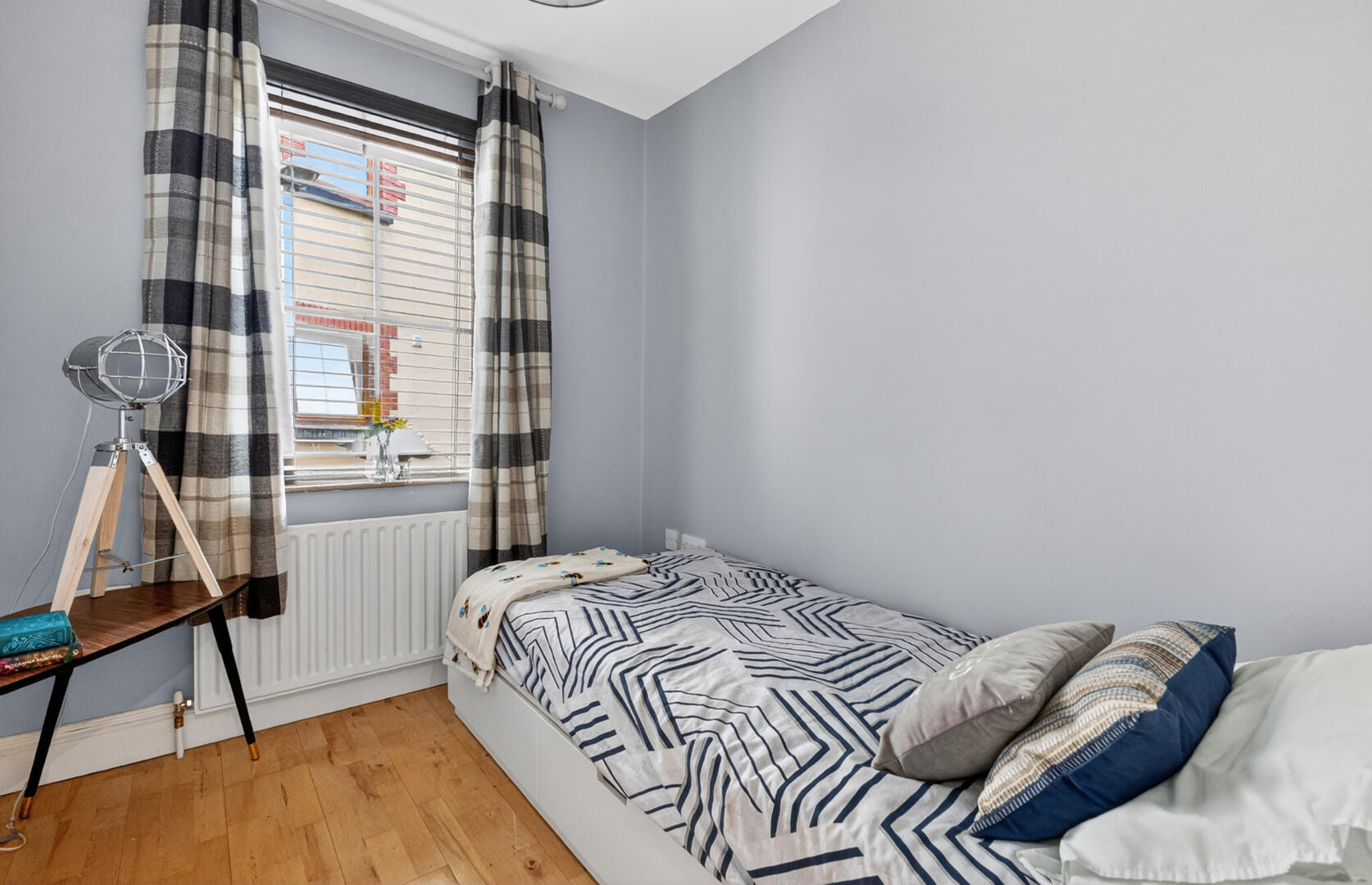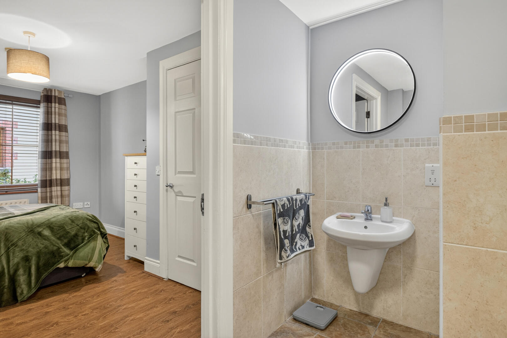 Oak laminate wooden flooring and mature outlook, access to en suite and shared shower room.