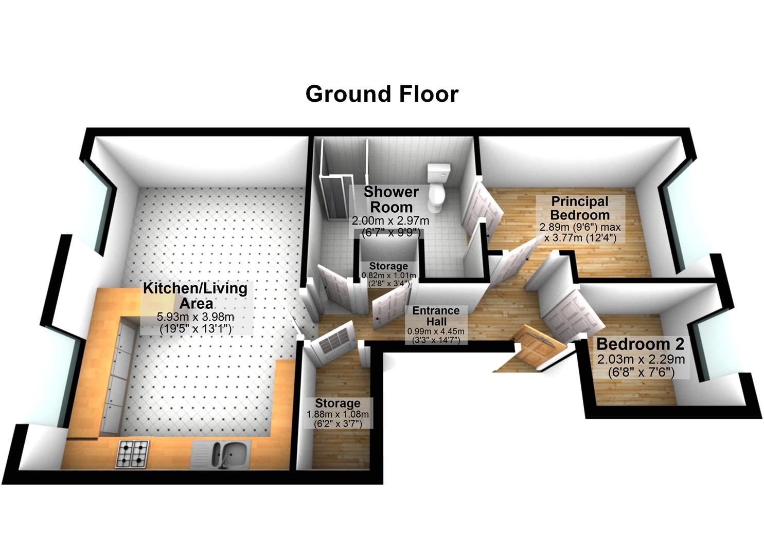 Bedroom Two 6'8 X 7'6 (2.03m X 2.29m)