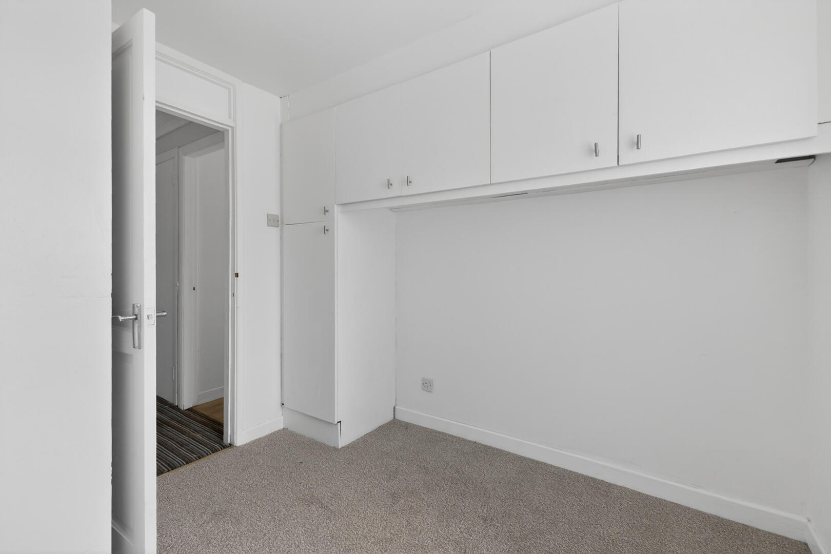 Outlook to the front, carpet, built in cupboards