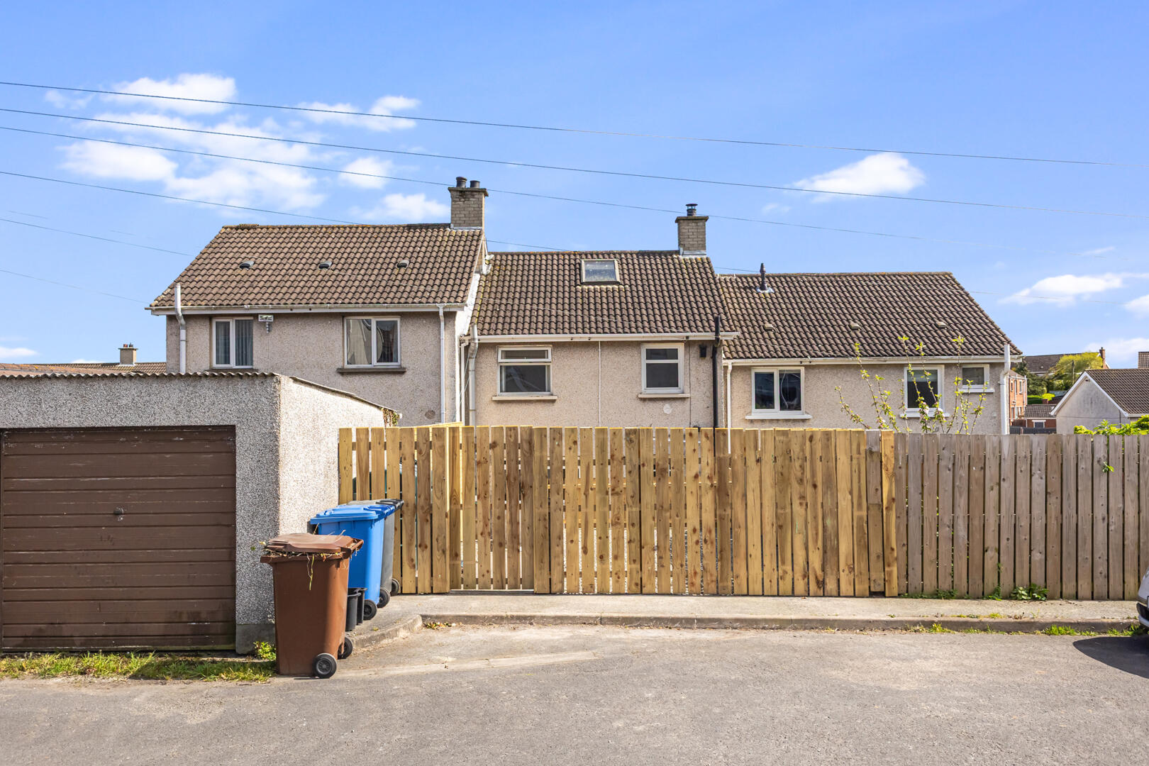 Fully enclosed front garden with decorative pebbles and walkway to front door. To the rear a tiered garden with both paved patio area and pebbled area, raised area perfect to be used as a flower bed, access to rear for parking. Outside water, outside light.