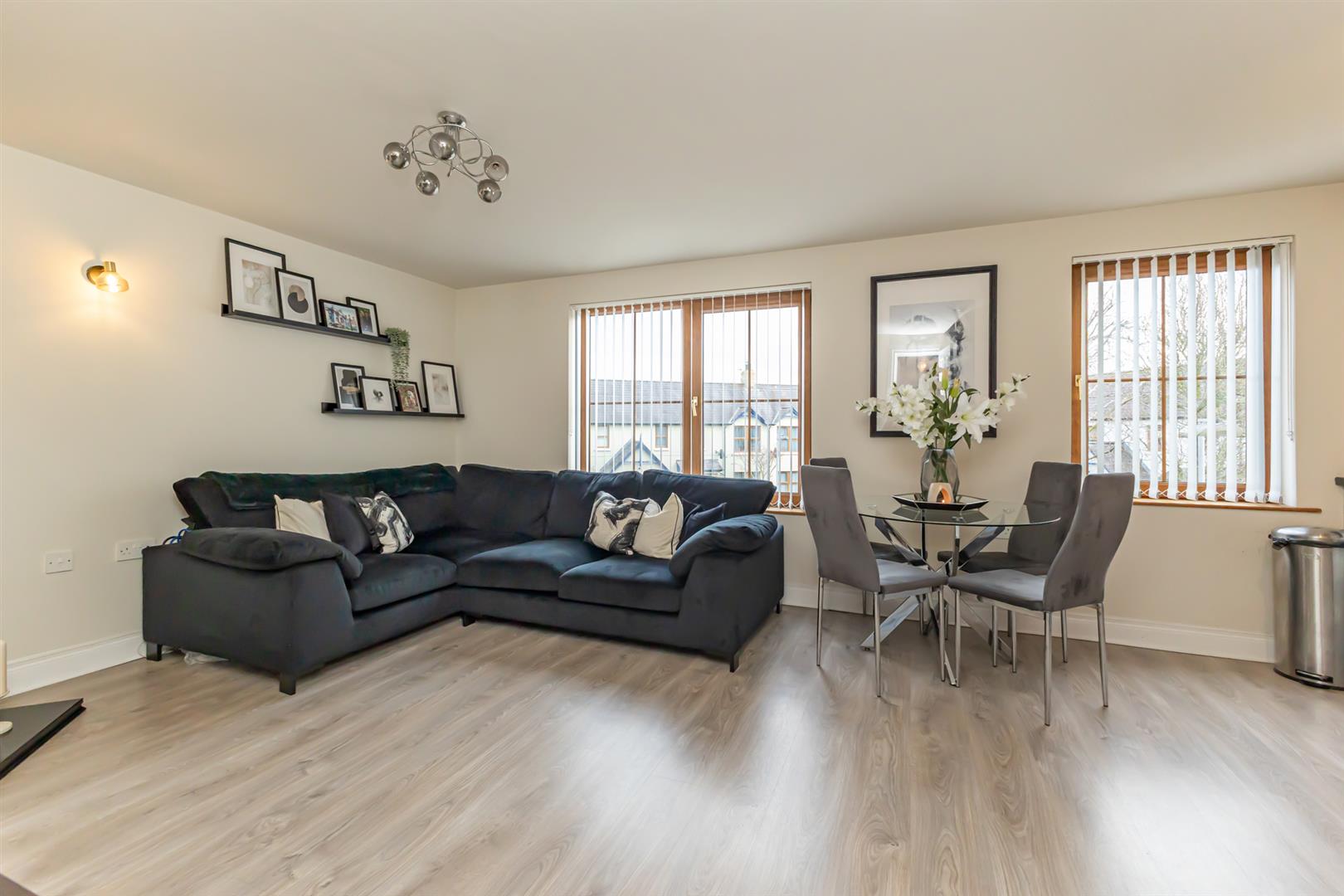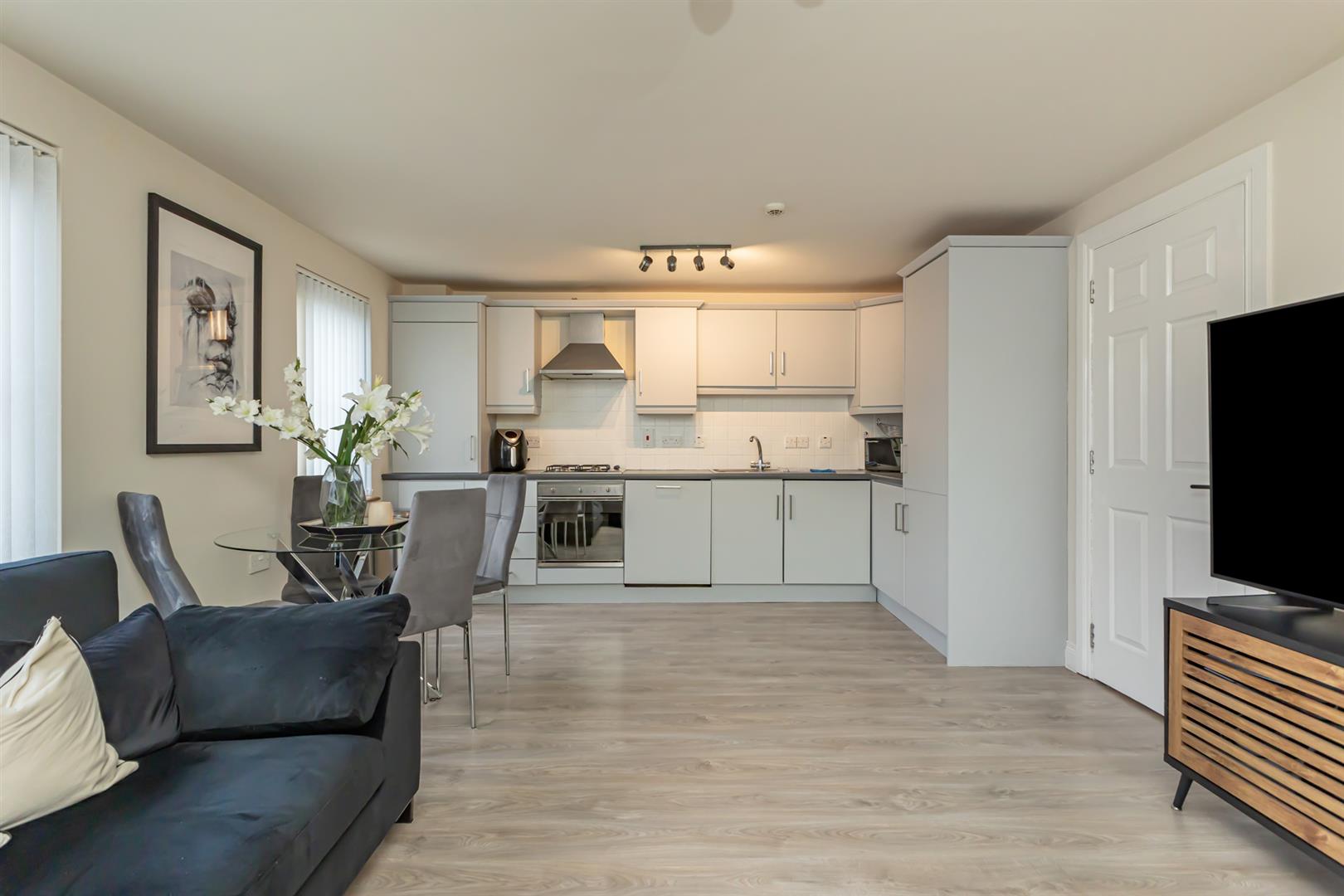 This stylish apartment provides comfortable and contemporary living. Accommodation in brief includes, fully fitted kitchen open plan to dining and living space and feature gas fire, two well-proportioned bedrooms, master benefitting from an ensuite shower room, an additional modern white suite family bathroom and an abundance of additional storage space.
