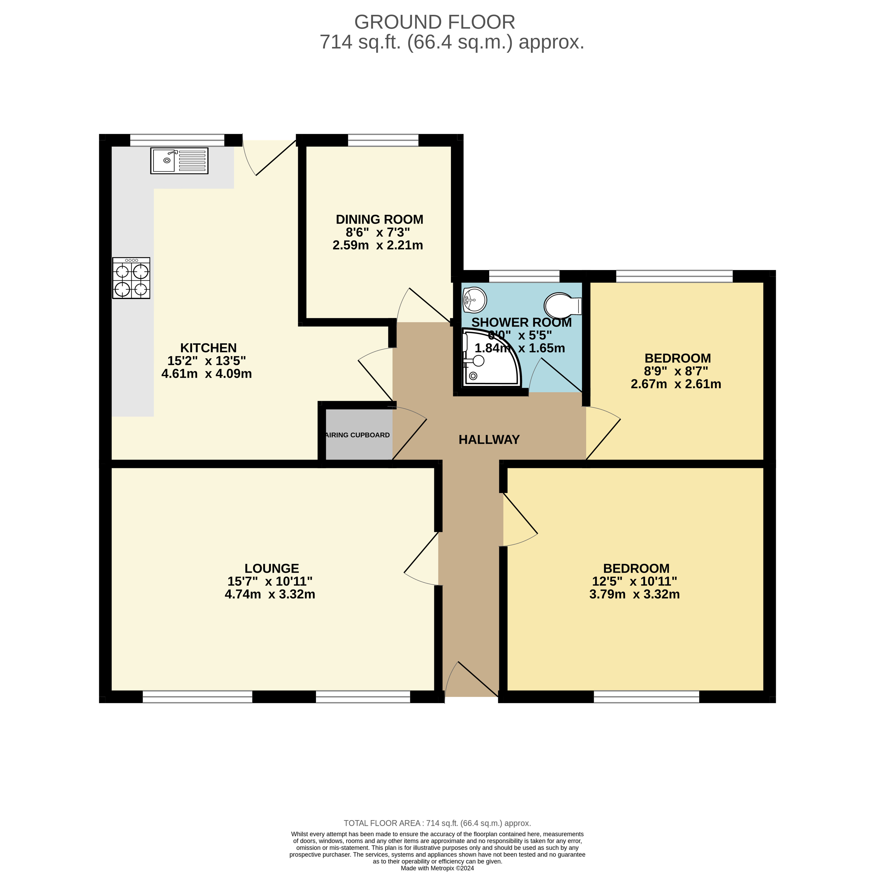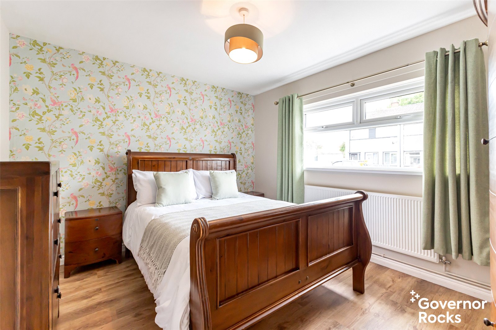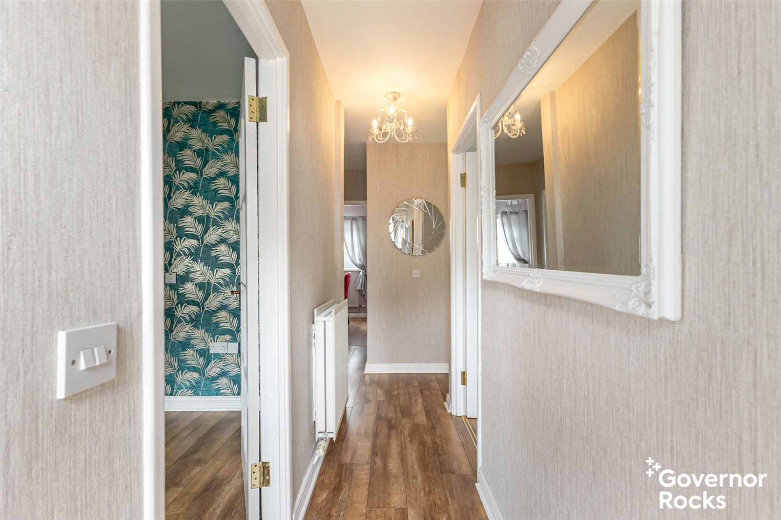 As you enter, you are greeted by a bright and airy hallway. To the left, the spacious lounge is furnished with two comfortable sofas and features a cosy fireplace, creating a warm and inviting atmosphere. To the right, you'll find the principal bedroom, a generously sized double room complete with a stylish sleigh bed frame (no mattress). The second bedroom, a smaller double, is equally well-presented and comfortable.