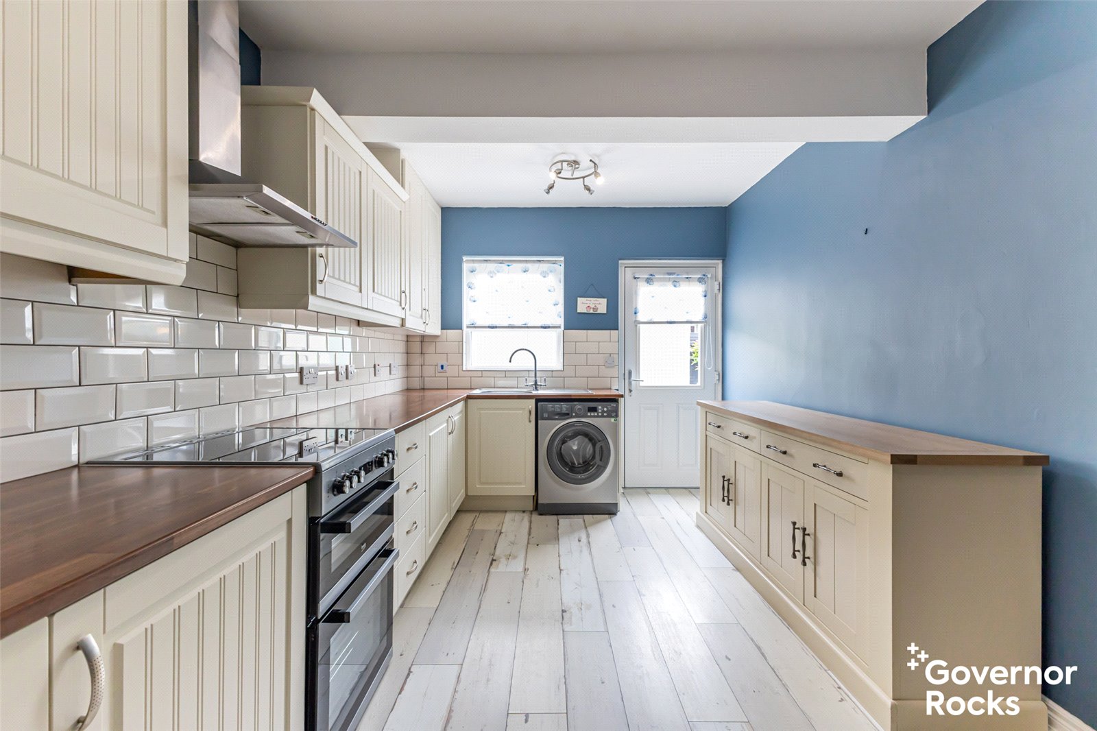 At the rear of the home, the kitchen is a true delight. It is fitted with modern high and low units, providing ample storage space and room for a dining table if desired. Adjacent to the kitchen, the second reception room is ideal for more formal dining or entertaining guests.