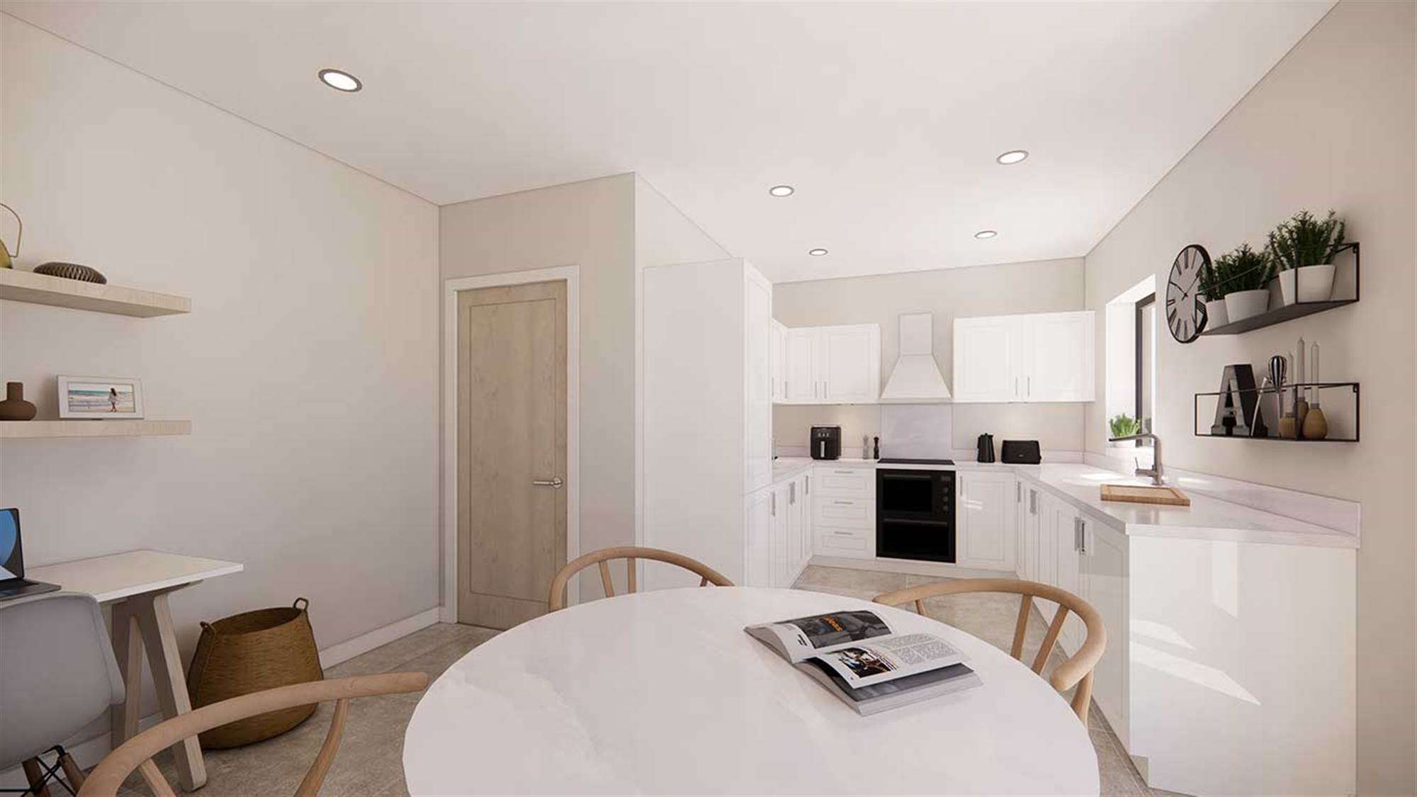 Downlights to the kitchen, WC and bathroom.