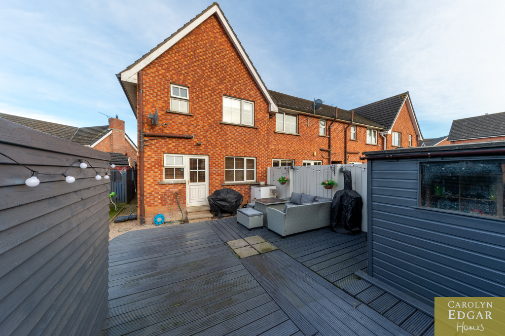 Set in the sought after Ardvanagh development this well presented and spacious property is set on a large corner site and with a private green area to the front provides a little extra privacy and space. Conveniently situated close to Bangor, Newtownards and main commuter routes to Belfast this modern property will appeal to many due to its spacious accommodation and central location. Downstairs comprises of bright entrance hall, spacious lounge with feature open fireplace and large windows letting in plenty of natural light and double doors leading to the spacious modern fitted kitchen with casual dining area. Upstairs the property has three well-presented bedrooms and modern fitted bathroom. Outside to the front of the property is gravelled driveway providing ample car parking and access to garage and to the side and rear are private enclosed gardens laid in lawn and large decked sun terrace . just perfect for outside entertaining .