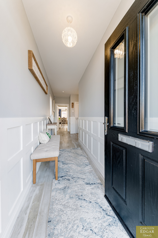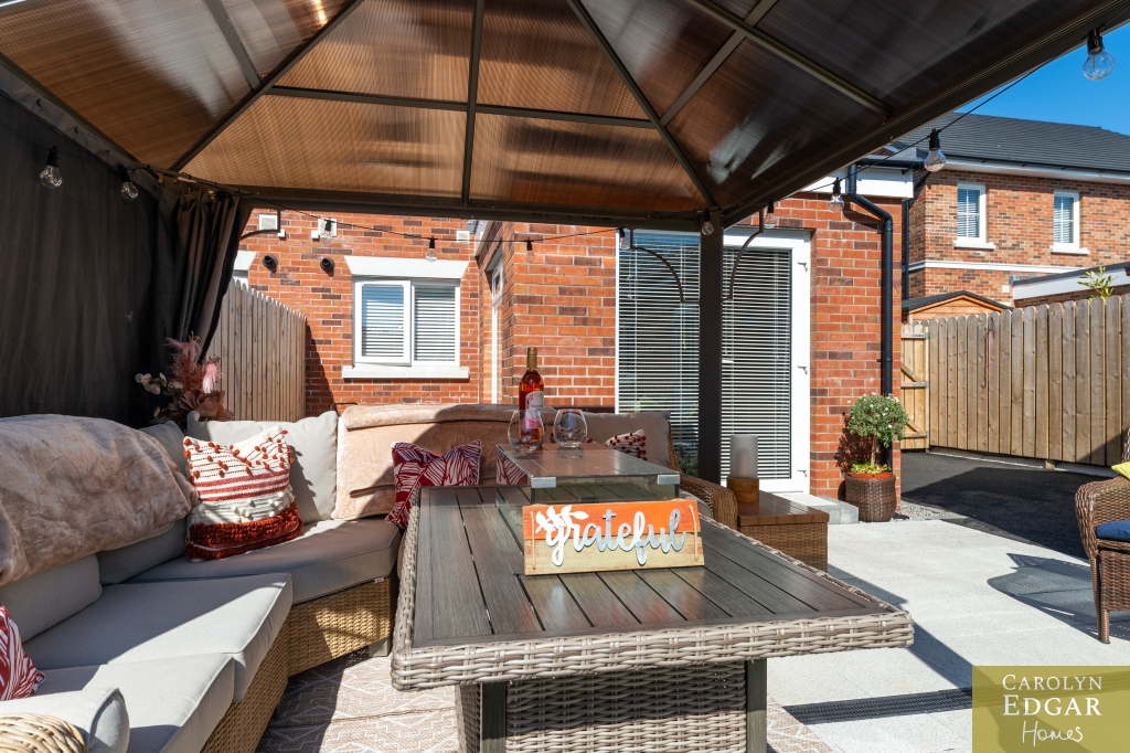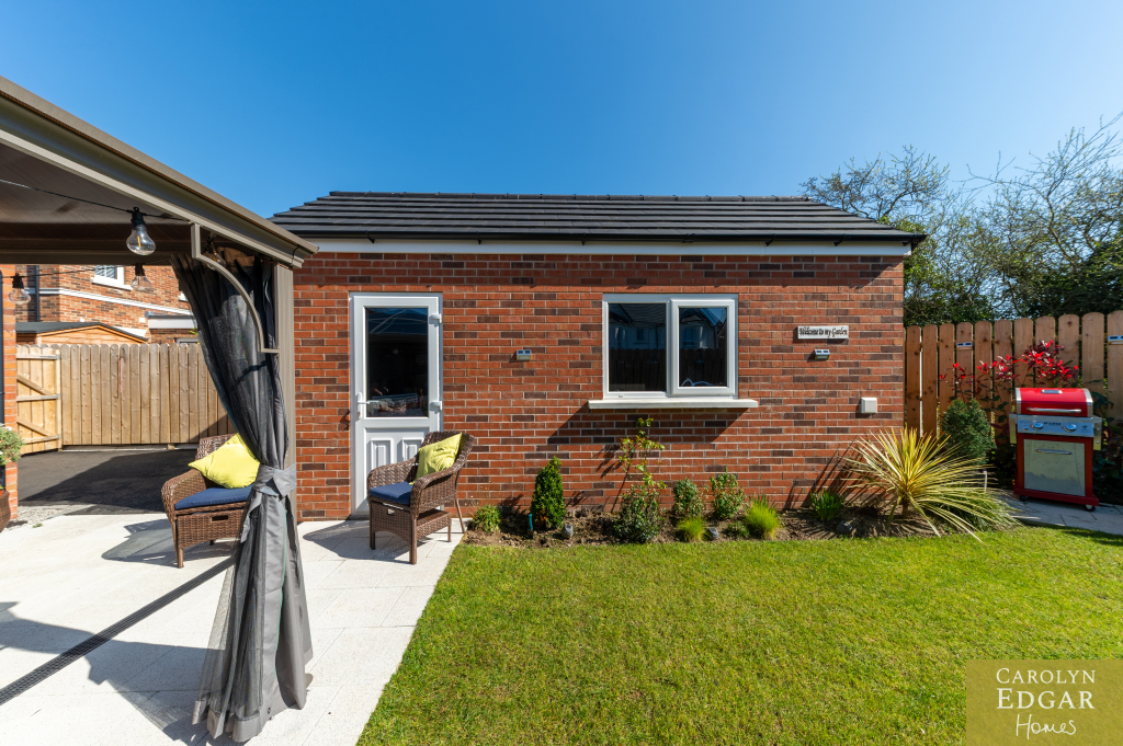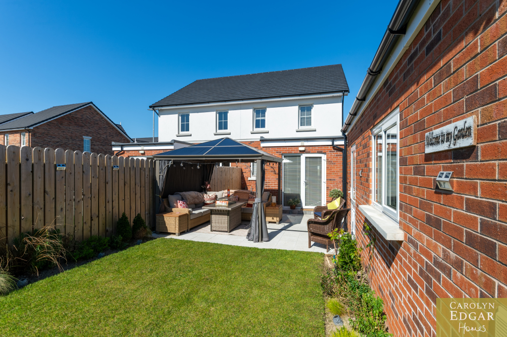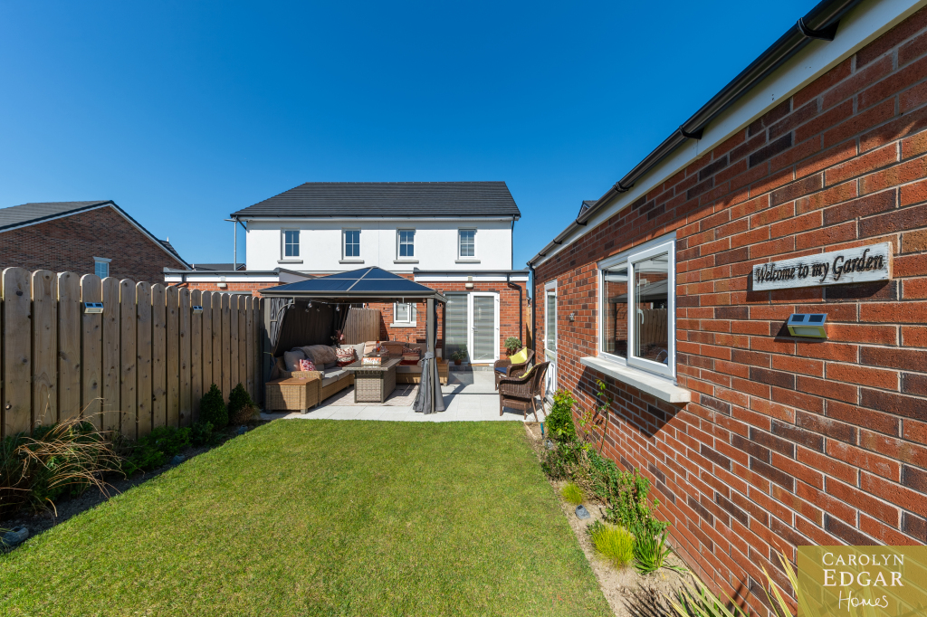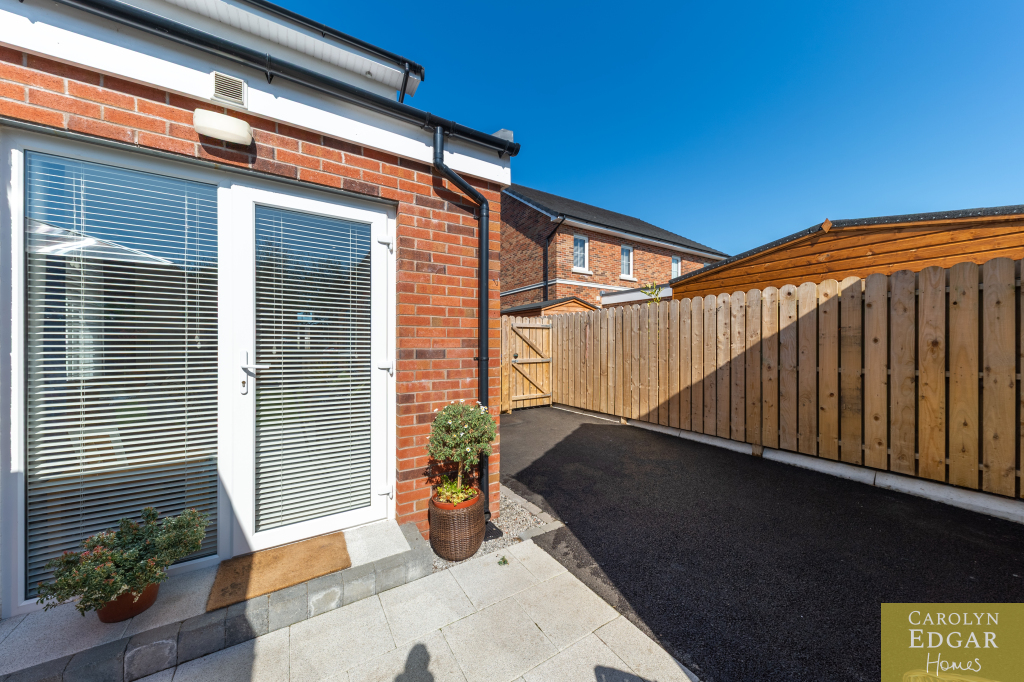Set in the sought-after Rowanvale development this spacious and elegant property is set on a generous site in south facing private gardens to the rear with the added bonus of not being over looked. Neutrally and stylishly decorated to the highest standard throughout and providing a perfect blend of luxury and contemporary accommodation the property is conveniently located within easy commute to Newtownards, Bangor and Belfast as well as many major shopping centres ,retail parks and local amenities close at hand. Internally the property comprises of bright entrance hallway with feature wood panelled walls, modern and spacious lounge with bay window flooding the room with plenty of natural light and pelmet ceiling with recessed lighting, contemporary open plan kitchen with an ample range of modern built in appliances and pantry, open to casual dining area and sun room with French doors out the south facing paved sun terrace and handy downstairs bathroom. Upstairs there are three beautifully stylish bedrooms, master suite with modern ensuite shower room and a separate contemporary family bathroom. Outside the property has gardens to front laid in lawn, tarmacked driveway to the side providing ample car parking, electric car charging point and access to garage. To the rear are perfectly maintained sunny south facing private rear gardens, laid in lawn and paved patio area.what more could you possibly ask for