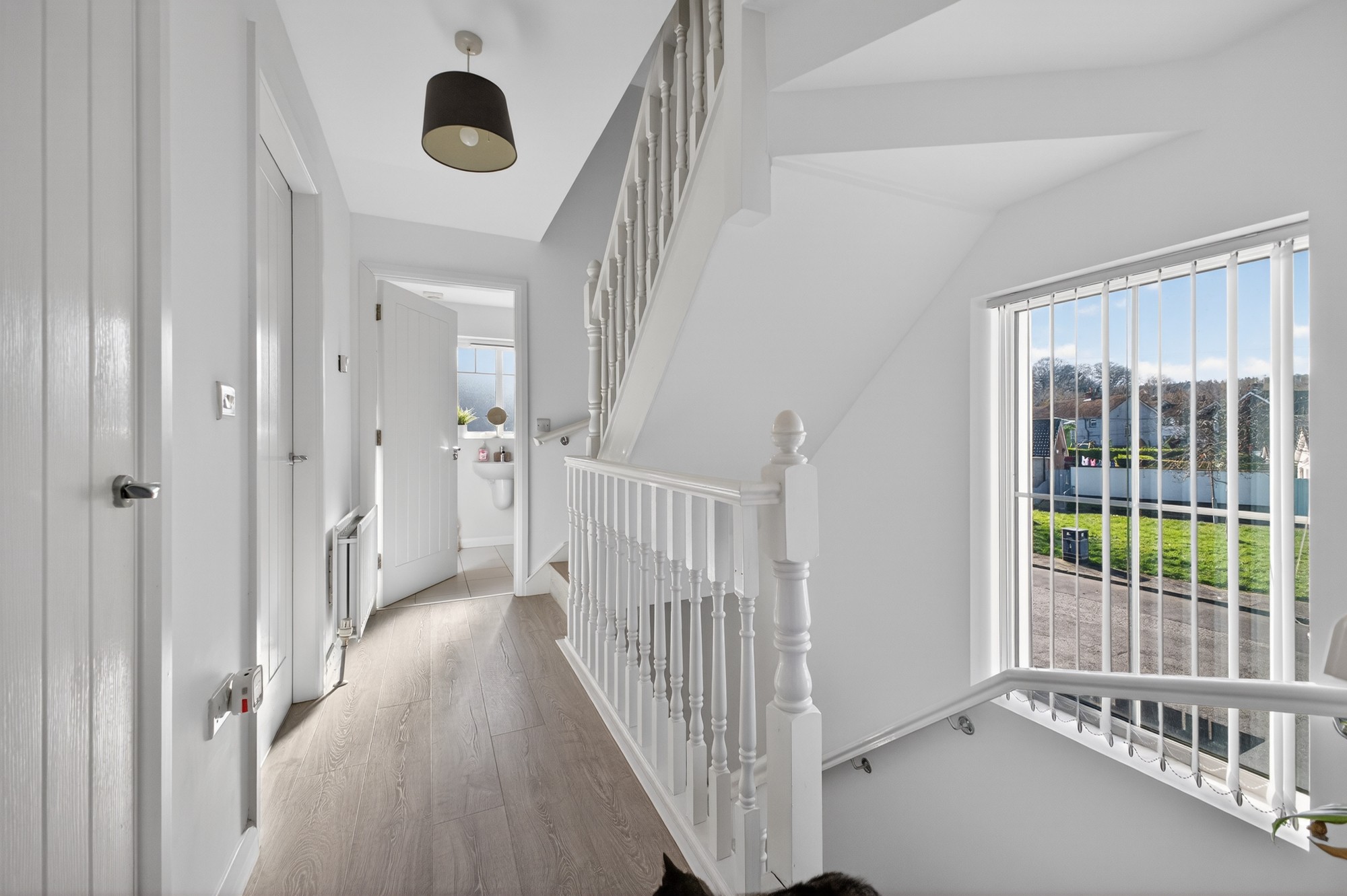 Bright and airy landing with access to storage cupboard.