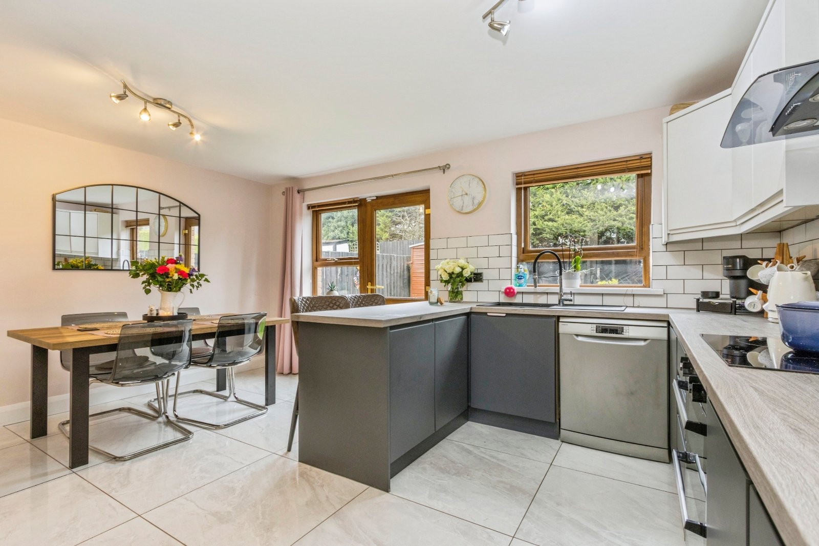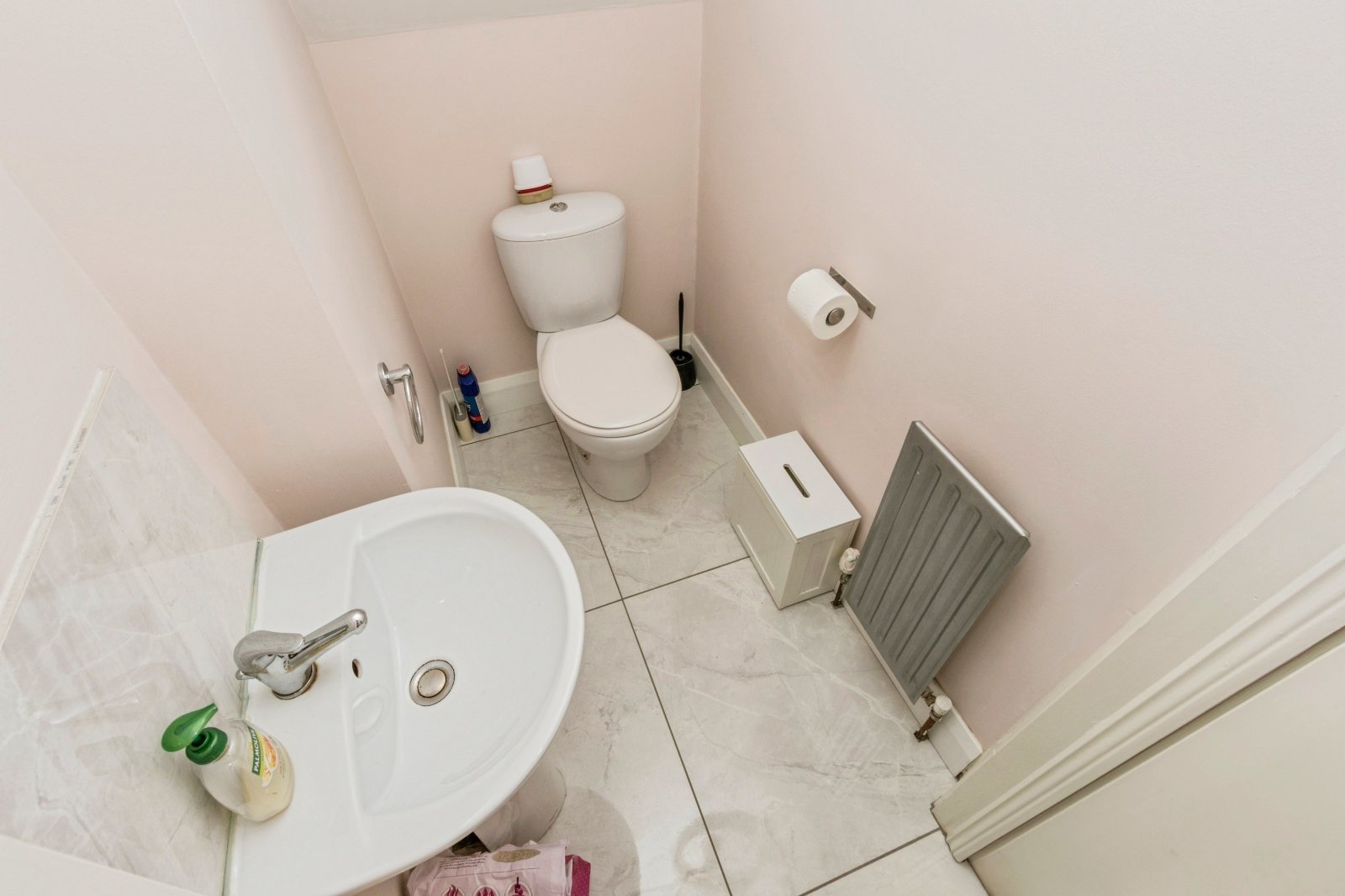 Internally, the accommodation comprises a bright lounge with double doors leading through to a spacious kitchen-diner - the perfect spot for entertaining or family dining. A ground floor cloakroom with white suite and WC adds essential practicality. Upstairs, there are three well-proportioned bedrooms and a contemporary bathroom with a crisp white suite.