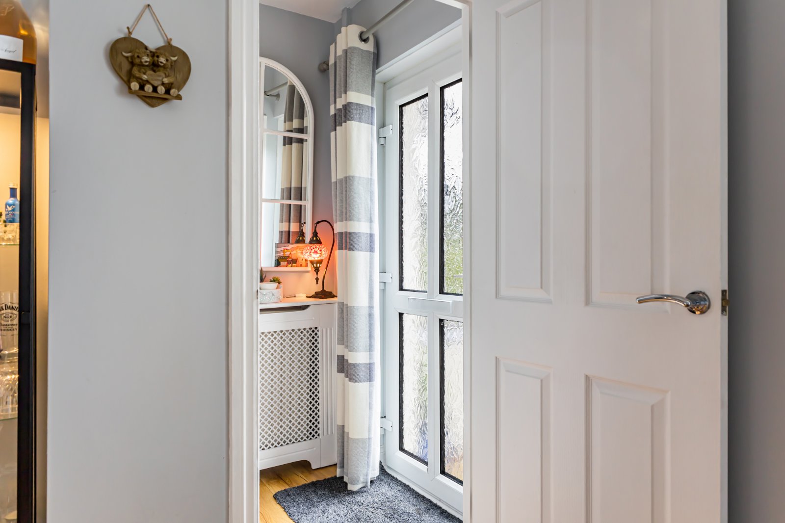 UPVC Double glazed front door, laminate wooden flooring leading to