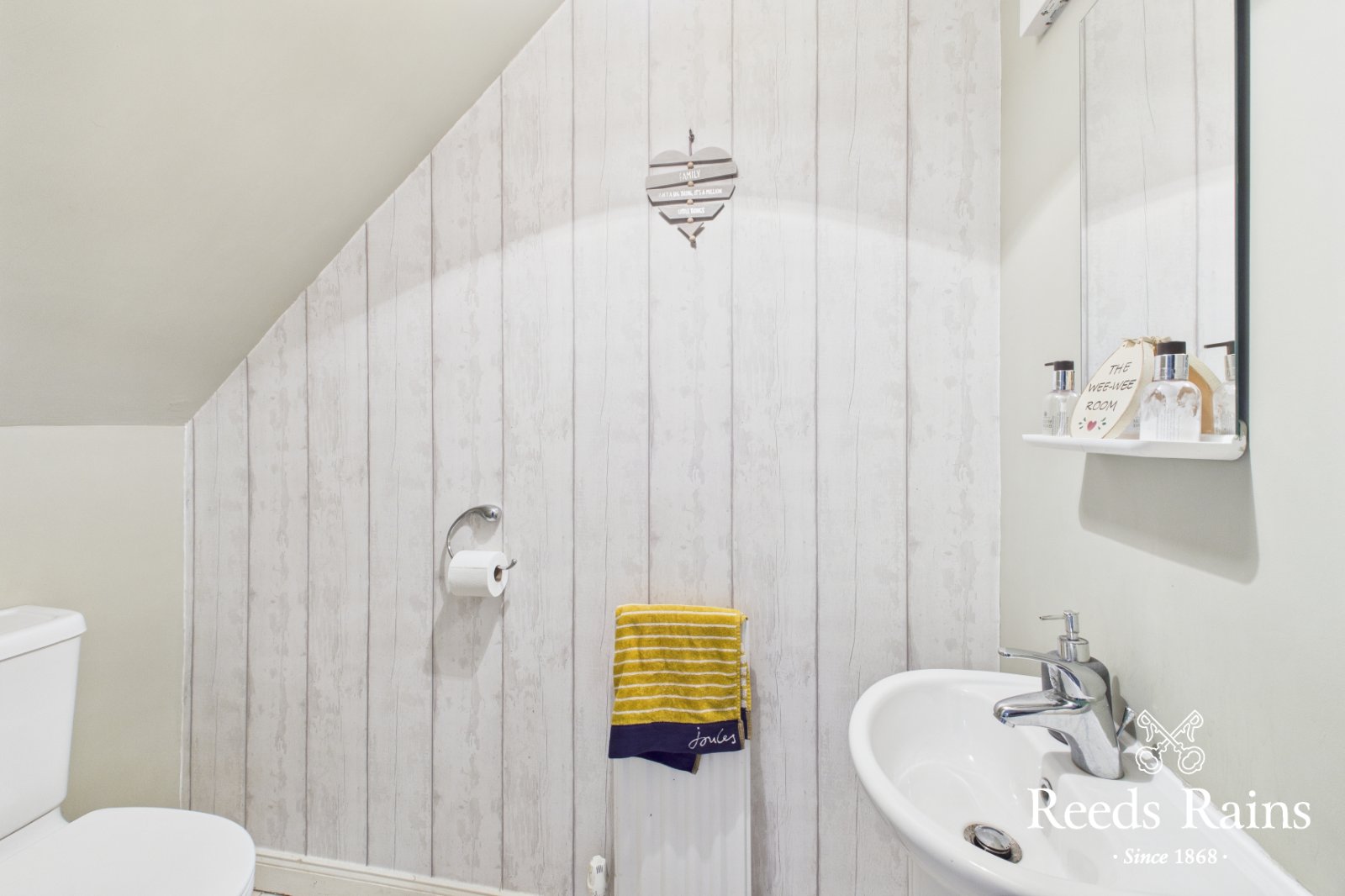 Laminate wooden floor, recessed spotlights, 2 Velux windows, upvc double glazed sliding patio door to garden.