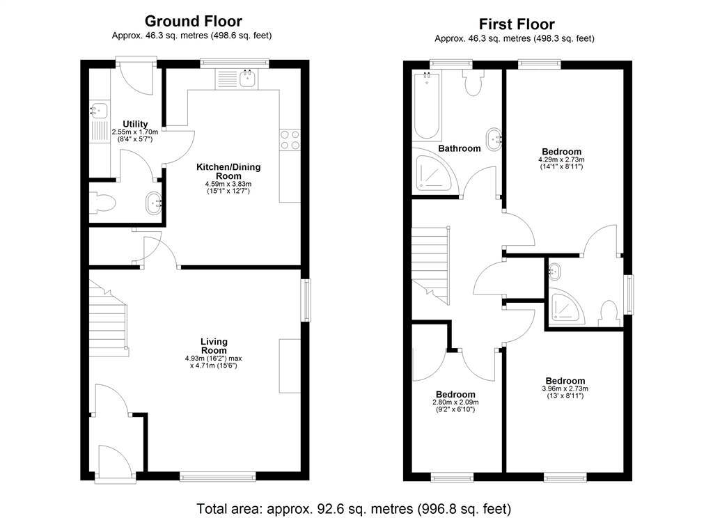 Total area: approx. 92.6 sq. metres (996.8 sq. feet)