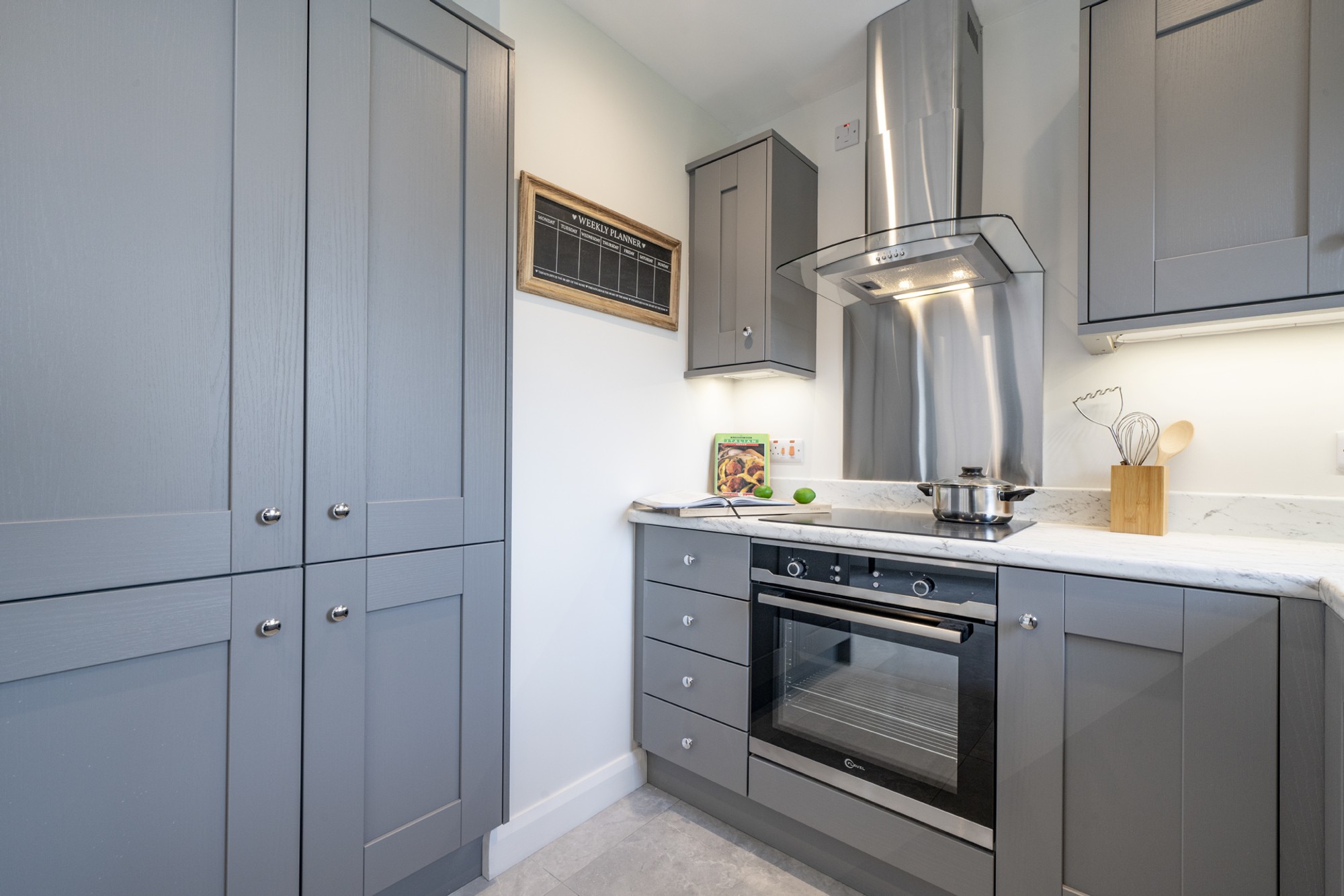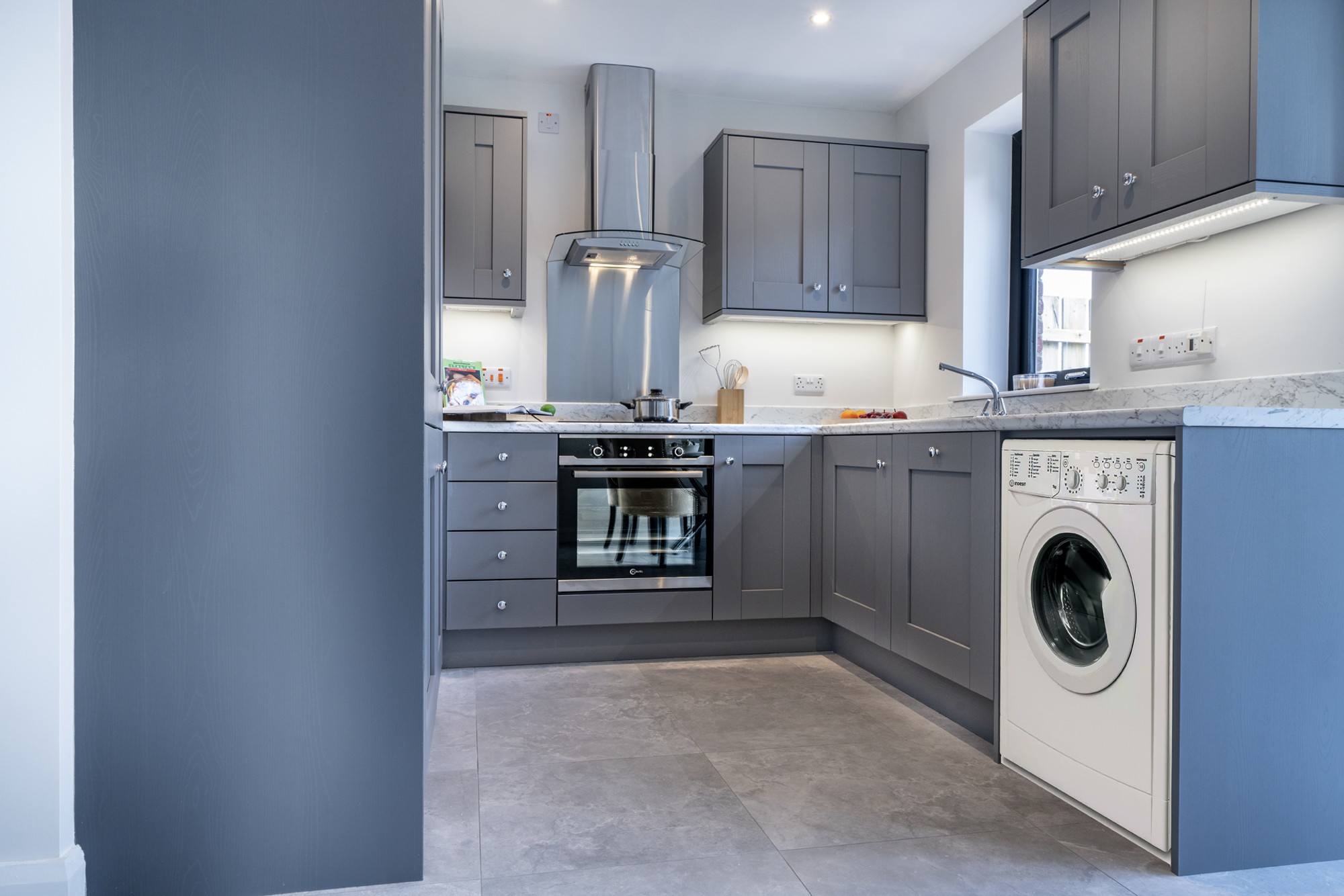 High quality units with integrated appliances to include electric hobs, electric oven, extractor hood and fridge/freezer
