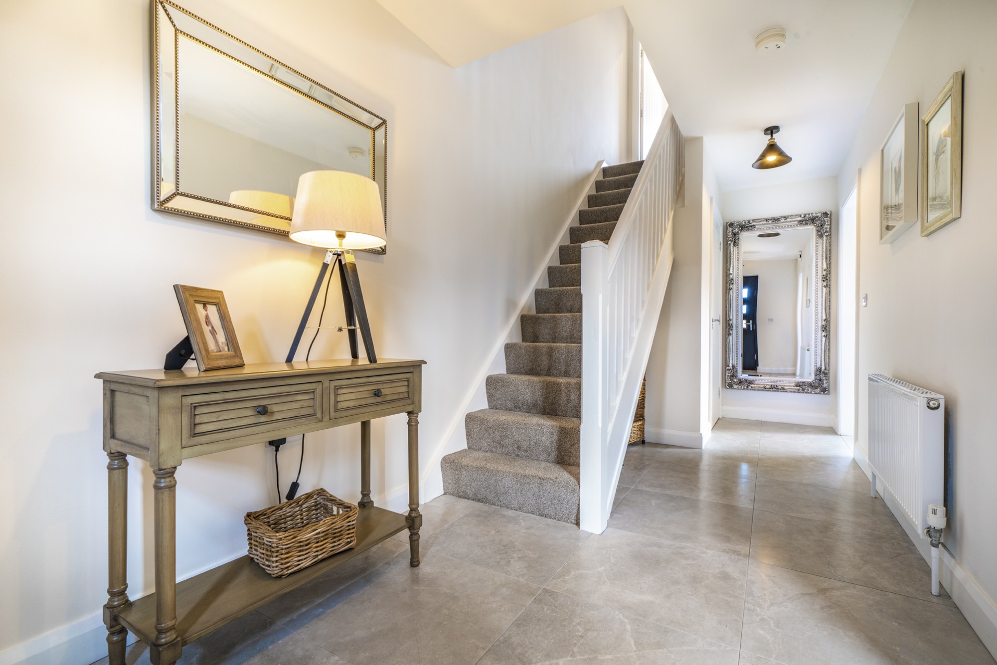 Tiled floor to kitchen area, entrance hall, bathroom, ensuite and WC