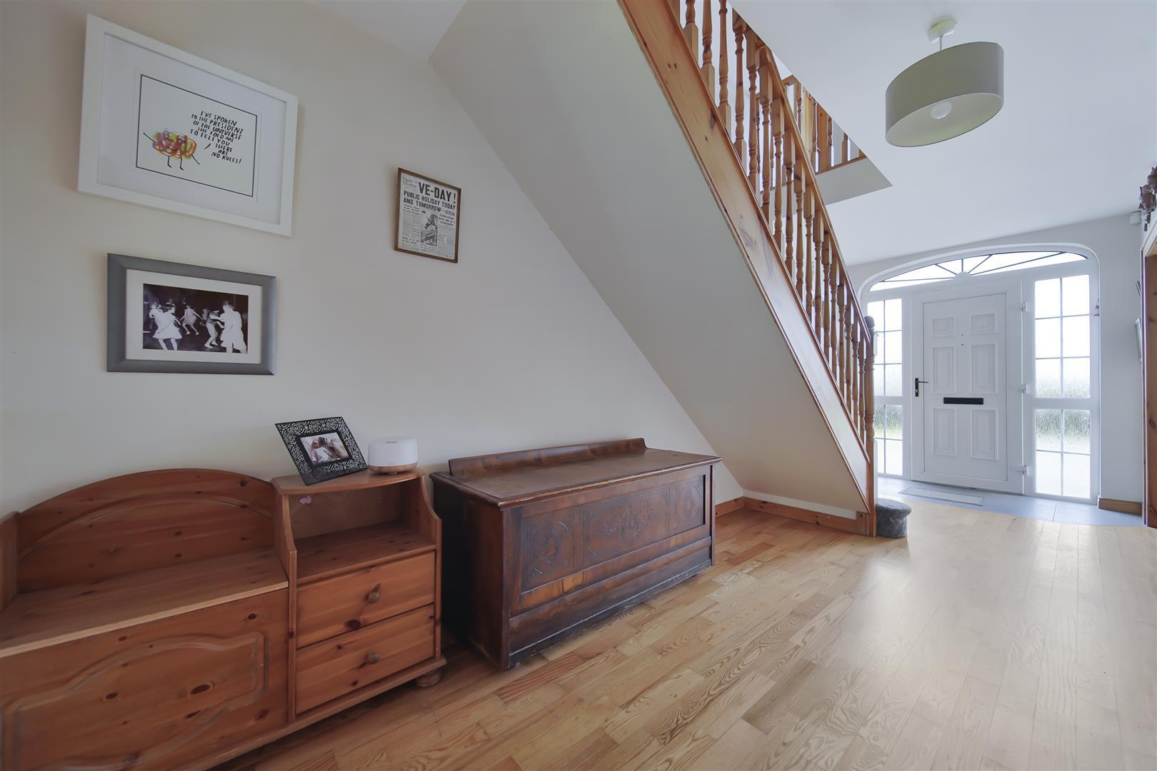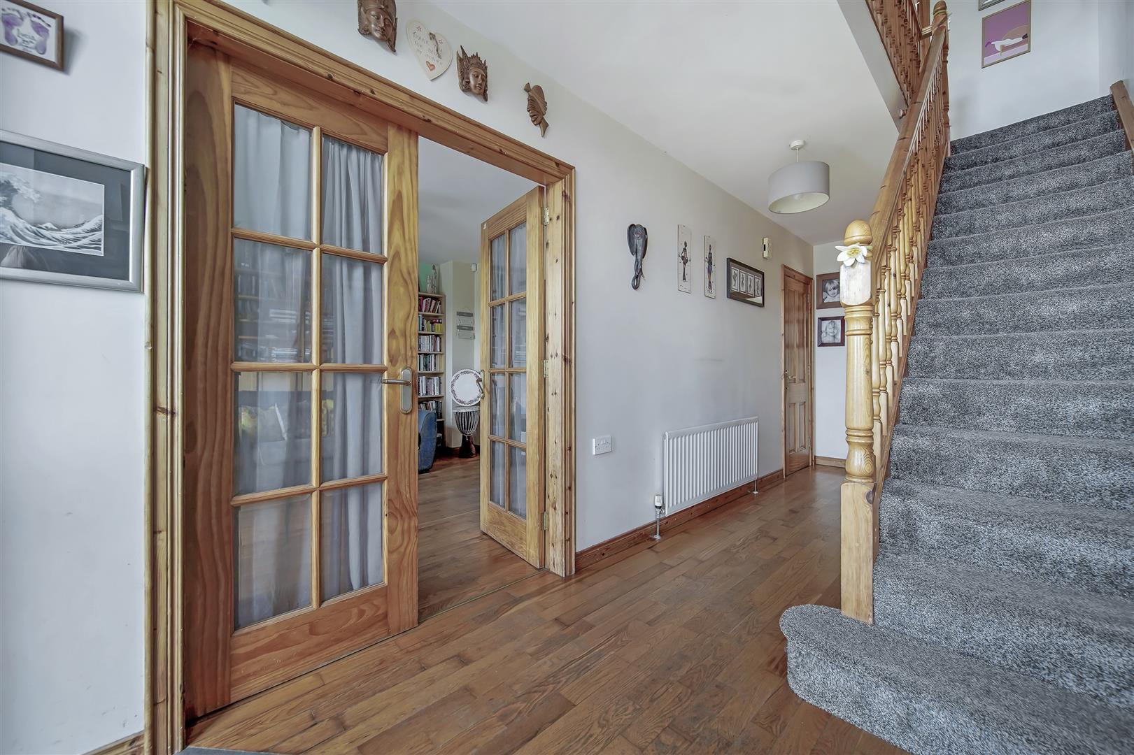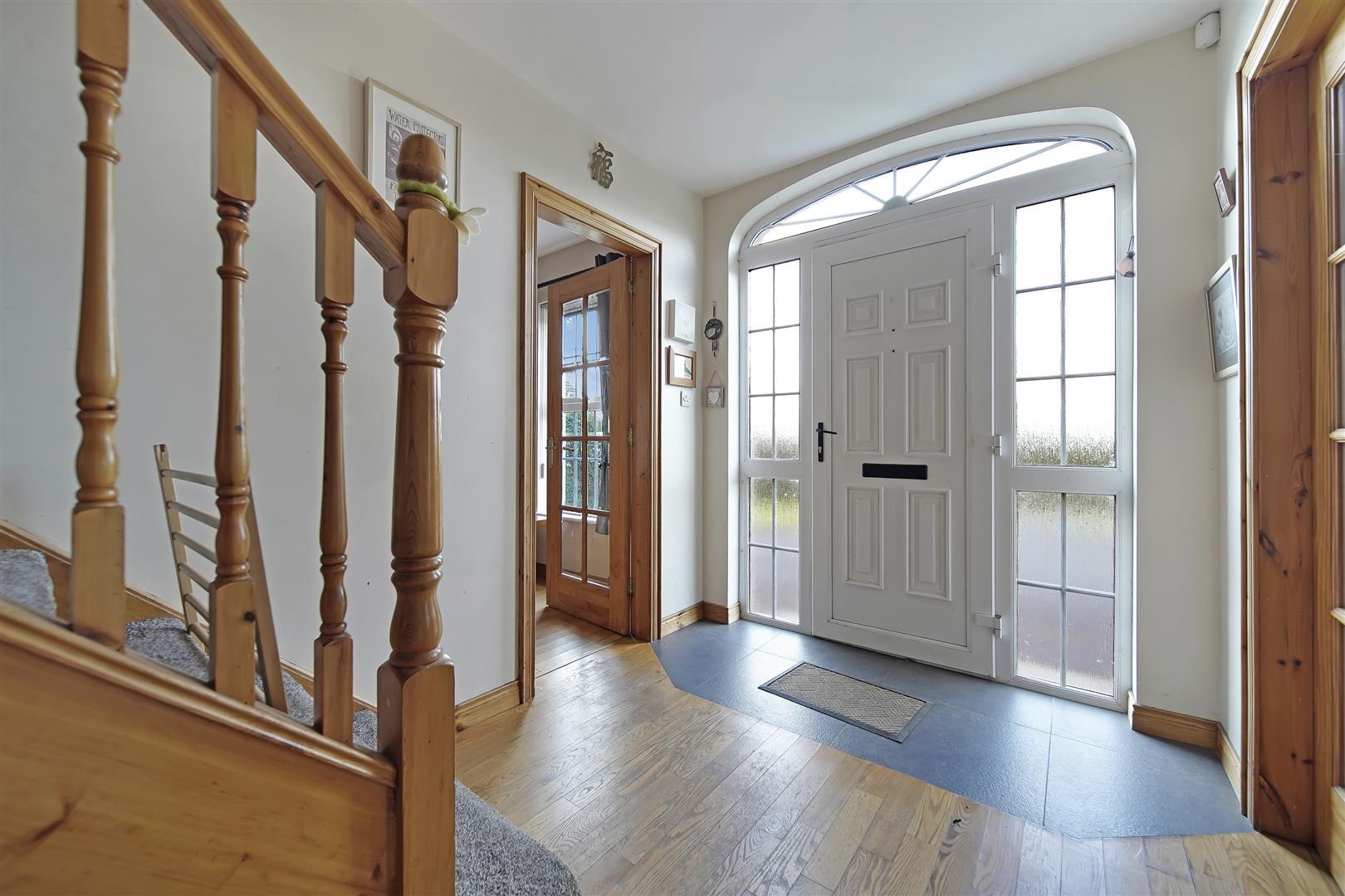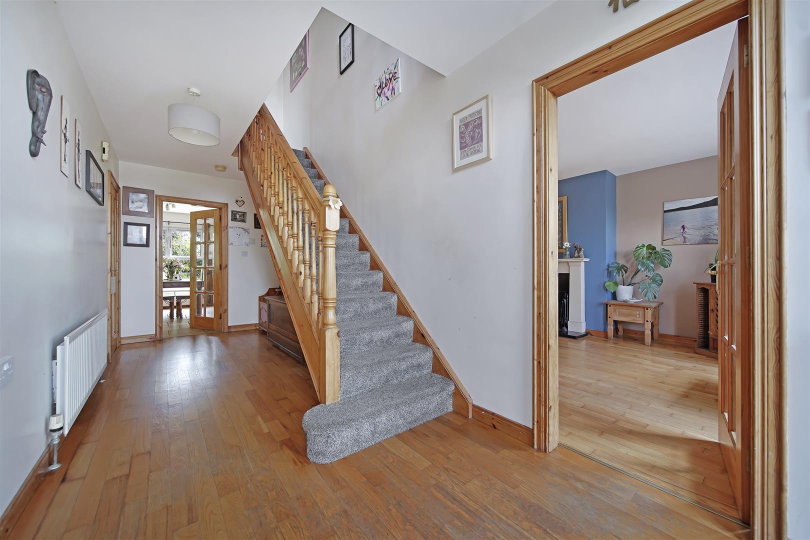 P.V.C. exterior door with double glazed side panels and fan light. Tiled entrance hall. Wooden floor. Pine balustrade staircase, carpeted. Telephone and power points.