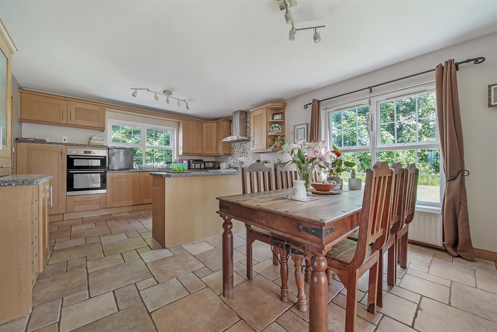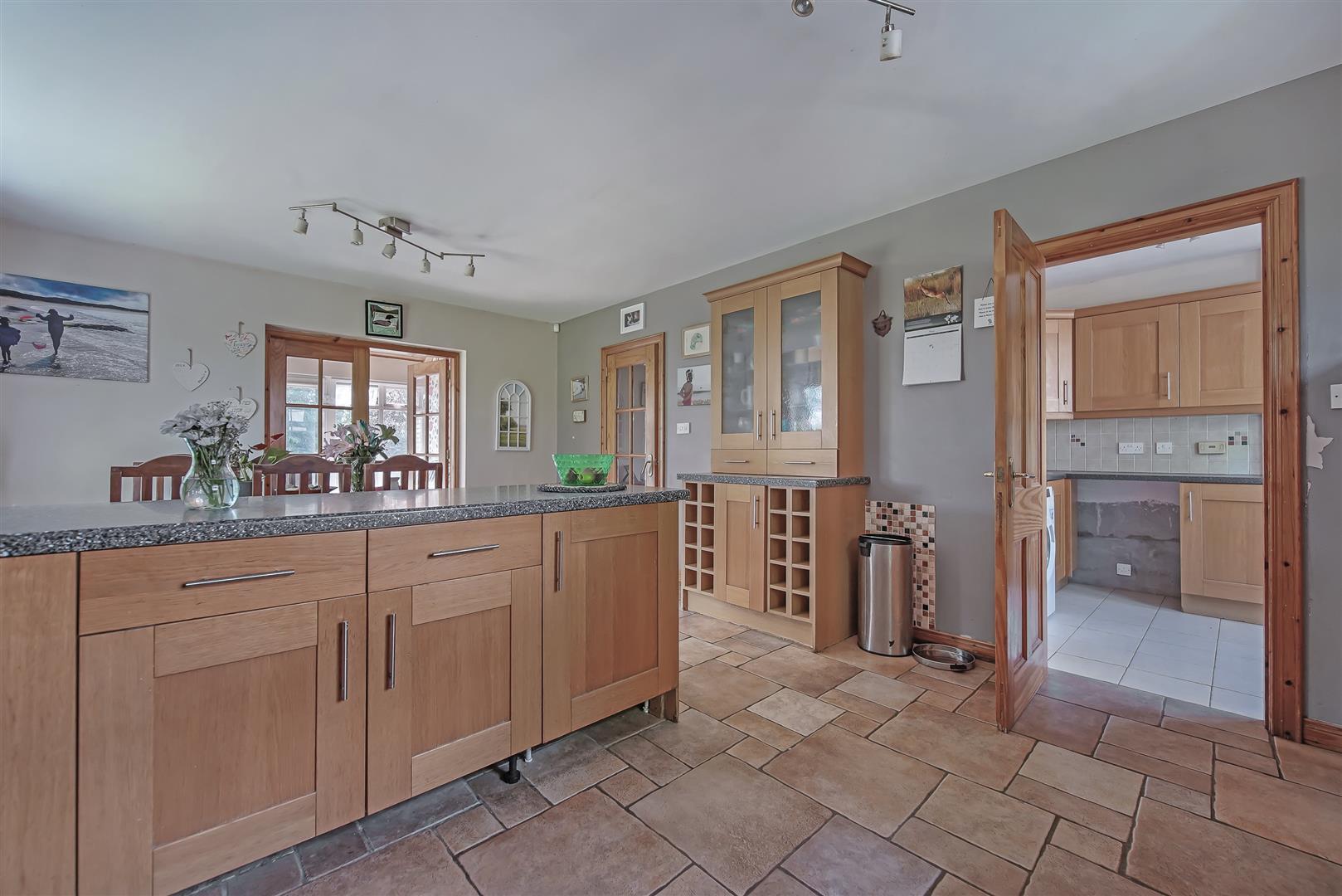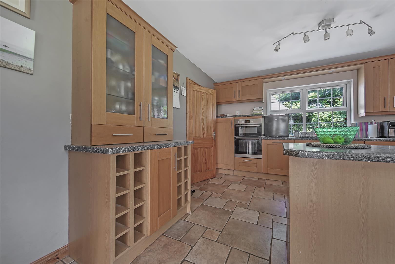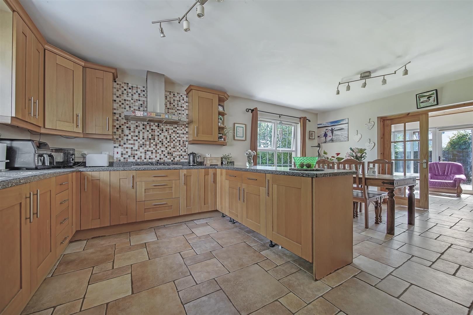 Glazed door. Fitted Oak kitchen with high and low level units. Concealed lighting under high level units. Built in Hotpoint oven and grill. Integrated fridge and dishwasher. Built in 5 Ring Neff Gas Hob. Stainless steel extractor hood. 1 1/2 bowl stainless steel sink unit with mixer taps. Tiled floor. Fitted Oak dresser with wine rack. Power points. French glazed doors leading to sunroom.