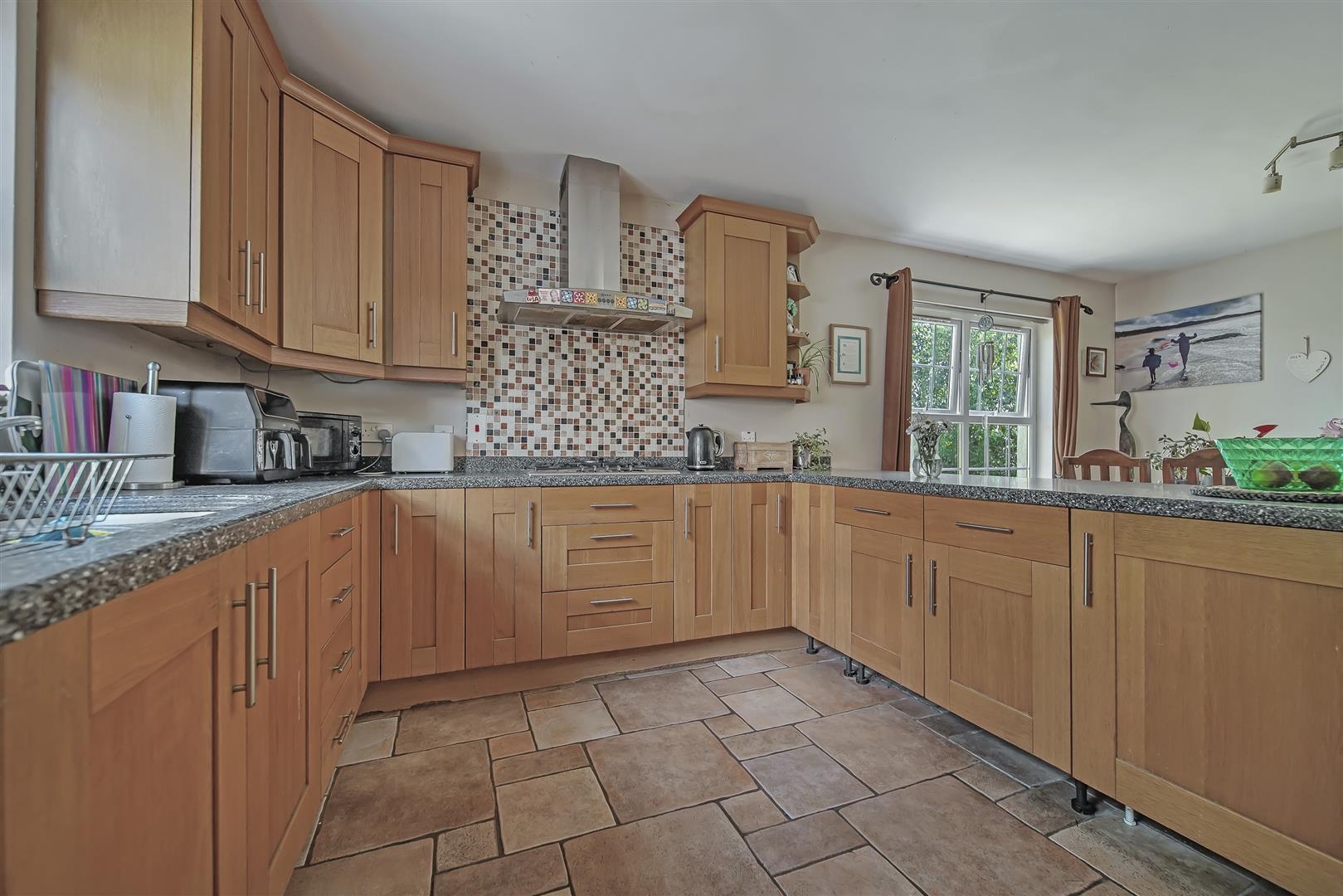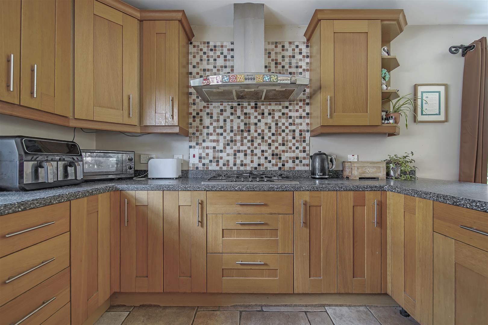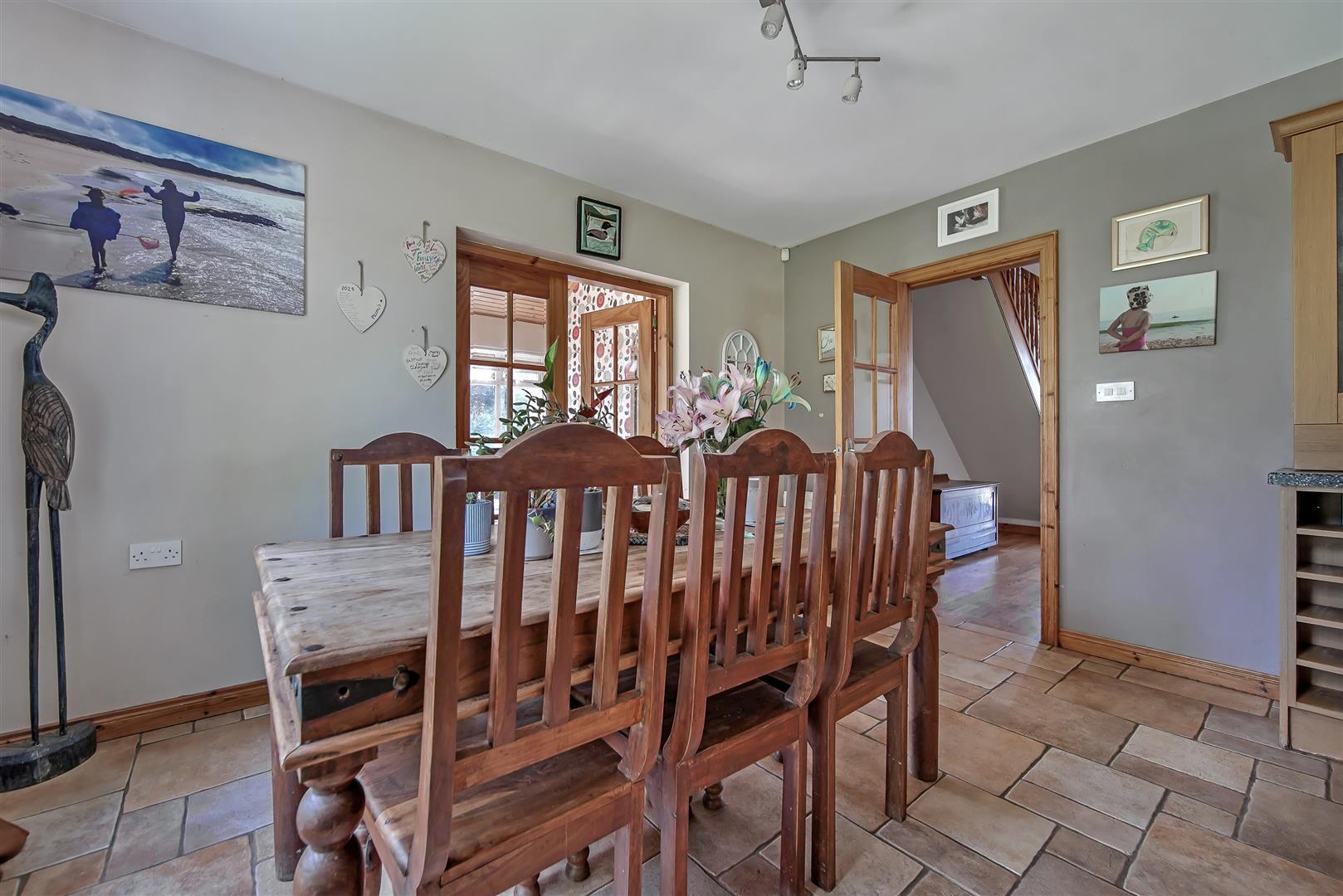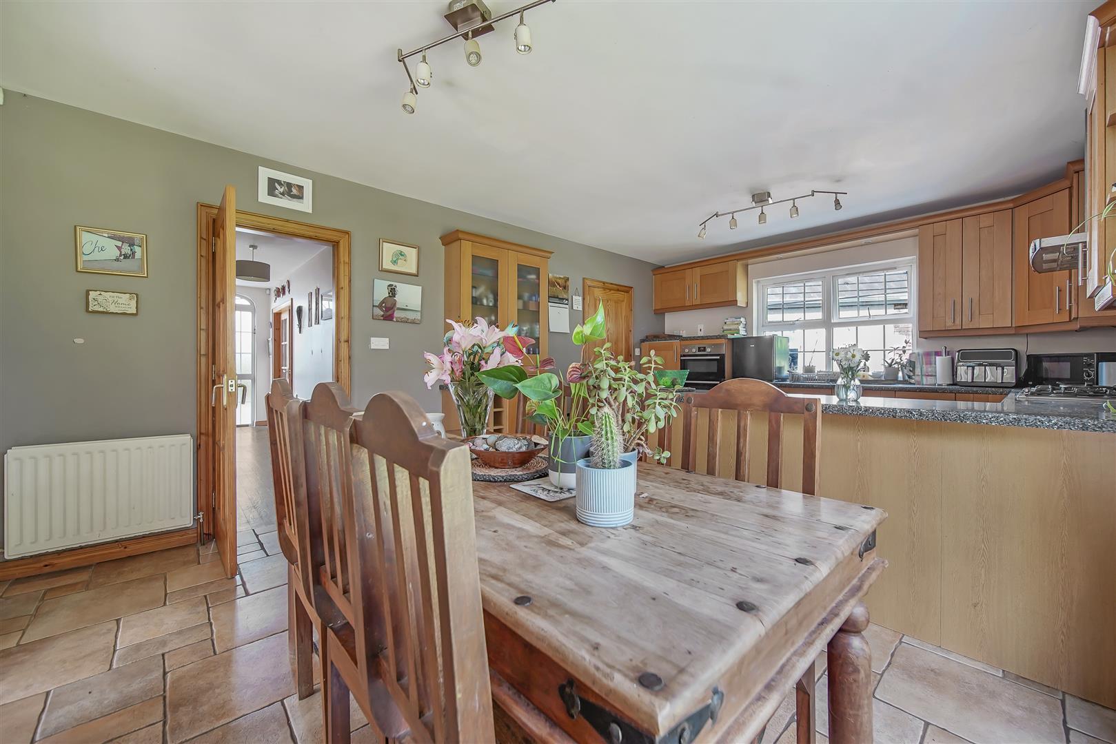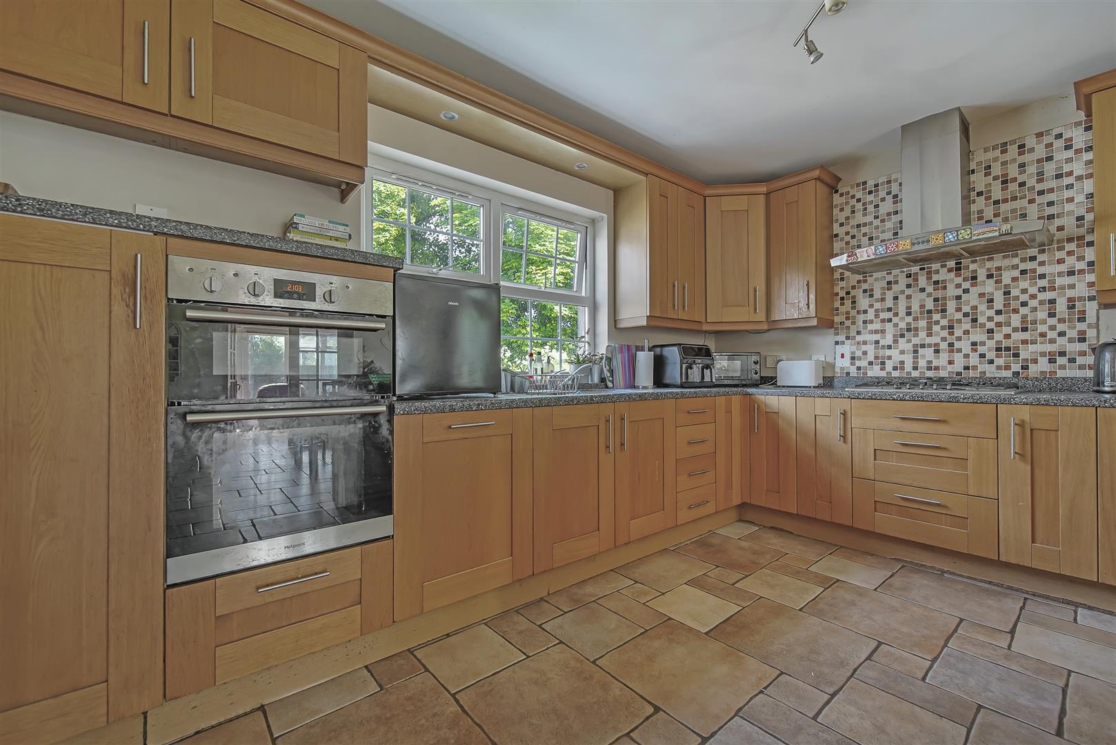 Glazed door. Fitted Oak kitchen with high and low level units. Concealed lighting under high level units. Built in Hotpoint oven and grill. Integrated fridge and dishwasher. Built in 5 Ring Neff Gas Hob. Stainless steel extractor hood. 1 1/2 bowl stainless steel sink unit with mixer taps. Tiled floor. Fitted Oak dresser with wine rack. Power points. French glazed doors leading to sunroom.
