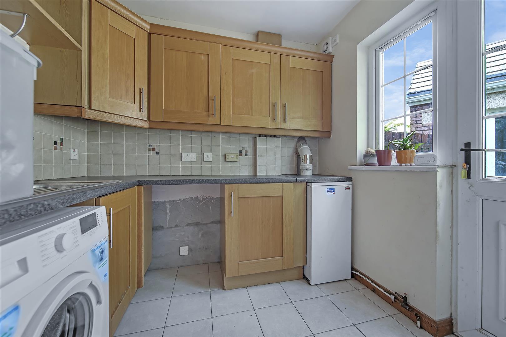 Fitted Oak high and low level units. Plumbed for automatic washing machine and space for tumble dryer. Single bowl stainless steel sink unit. Tiled floor and space backs. Central heating clock. Oil burner. P.V.C. back door.
