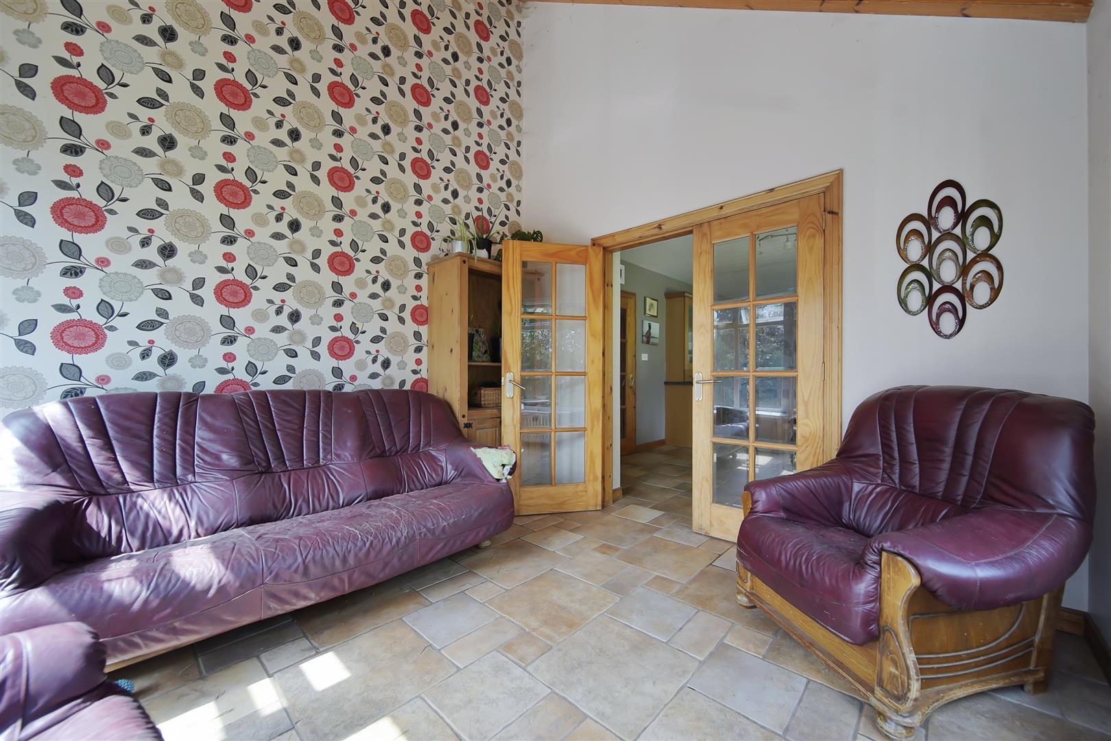 P.V.C. door leading to decking (South Facing). Tongue and groove ceiling. Power points.