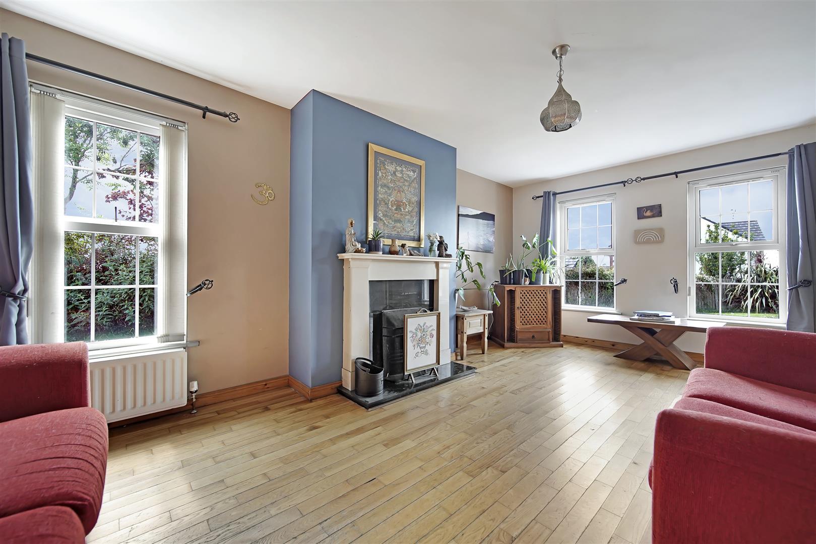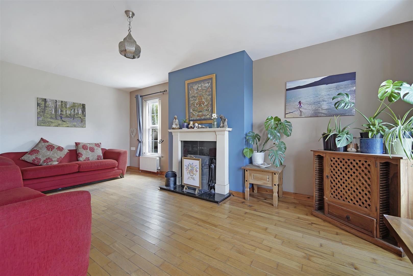 Glazed door. Open fire with marble fireplace surround and granite inset and hearth. Wooden floor. Television and power points.